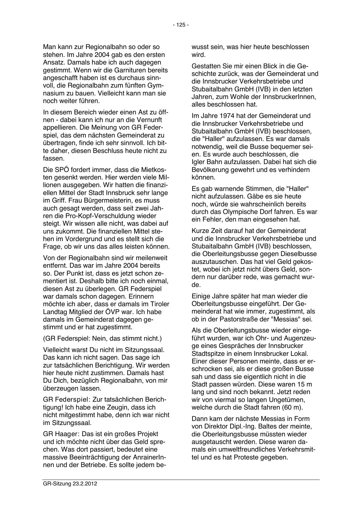 appellieren. Die Meinung von GR Federspiel, das dem nächsten Gemeinderat zu