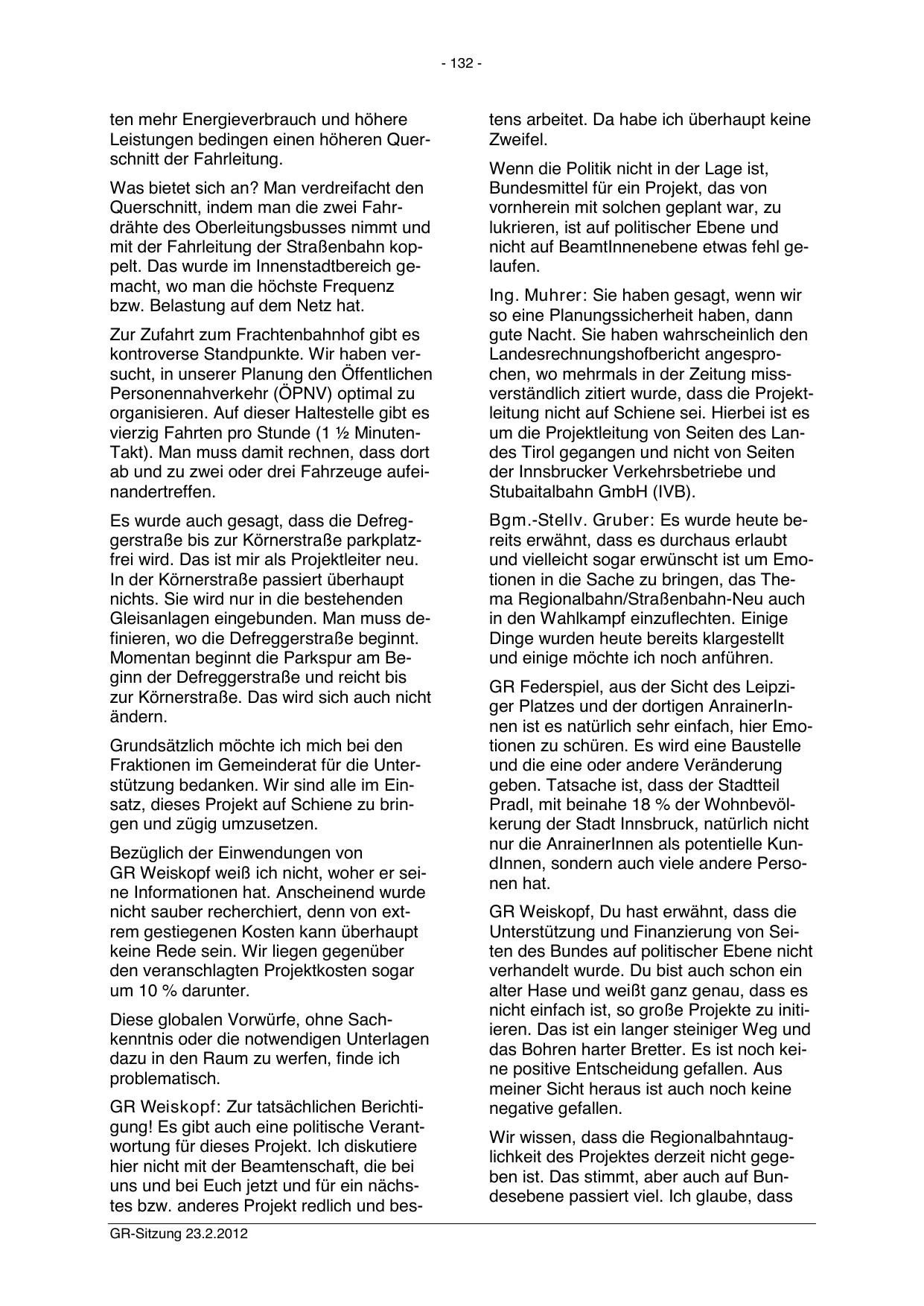 Bgm.-Stellv. Gruber: Es wurde heute bereits erwähnt, dass es durchaus erlaubt