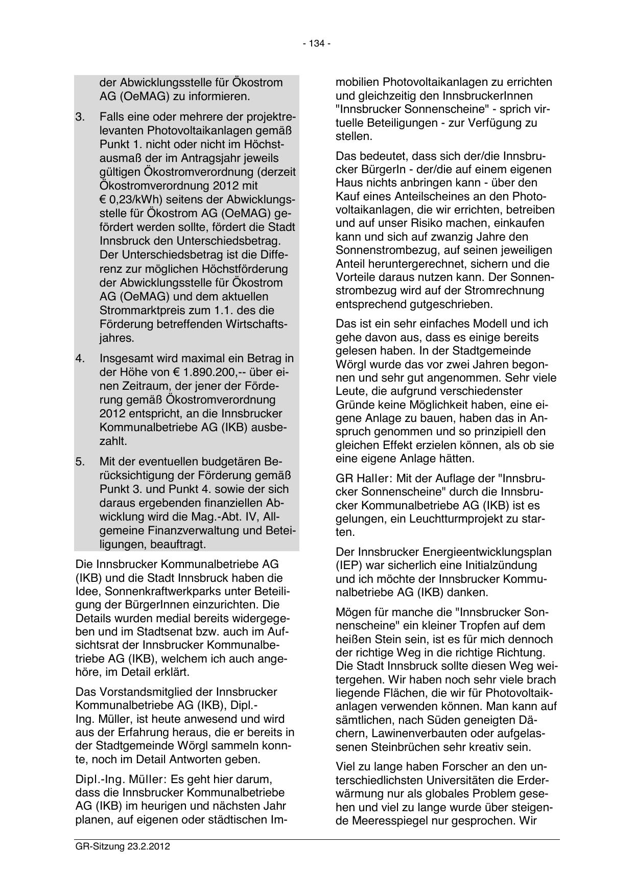 Details wurden medial bereits widergegeben und im Stadtsenat bzw. auch im Aufsichtsrat der Innsbrucker Kommunalbetriebe AG (IKB), welchem ich auch angehöre, im Detail erklärt.
