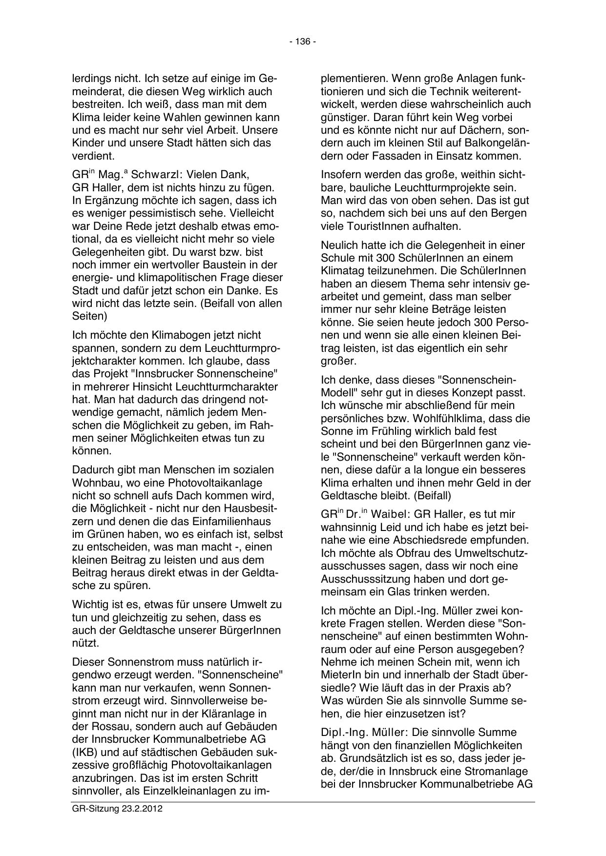 GRin Dr.in Waibel: GR Haller, es tut mir