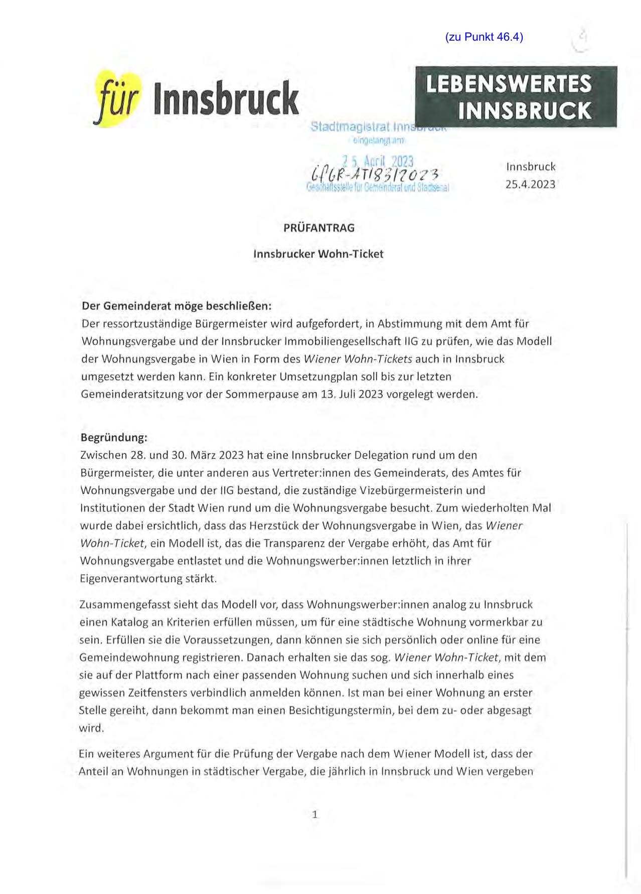 Wohnungsvergabe und der lnnsbrucker Immobiliengesellschaft IIG zu prüfen, wie das Modell