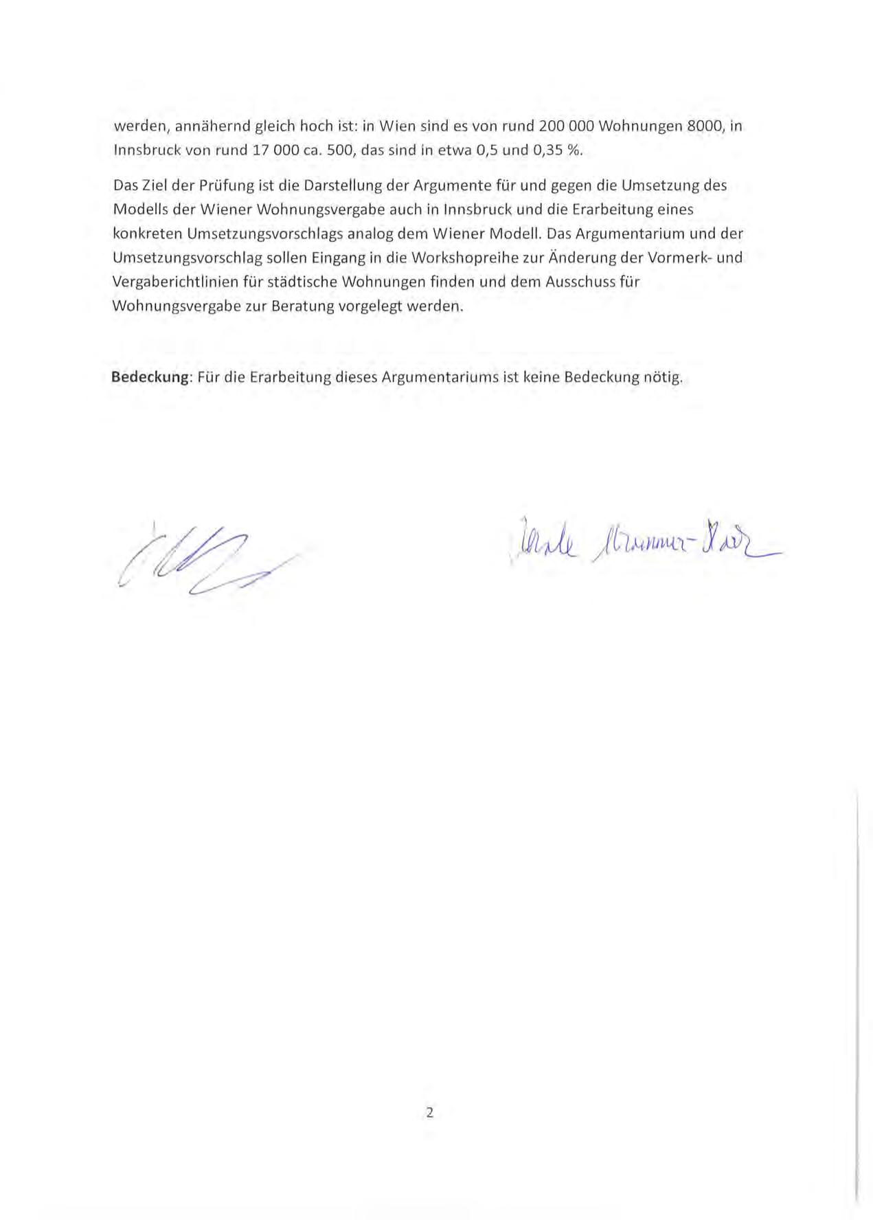 Modells der Wiener Wohnungsvergabe auch in Innsbruck und die Erarbeitung eines