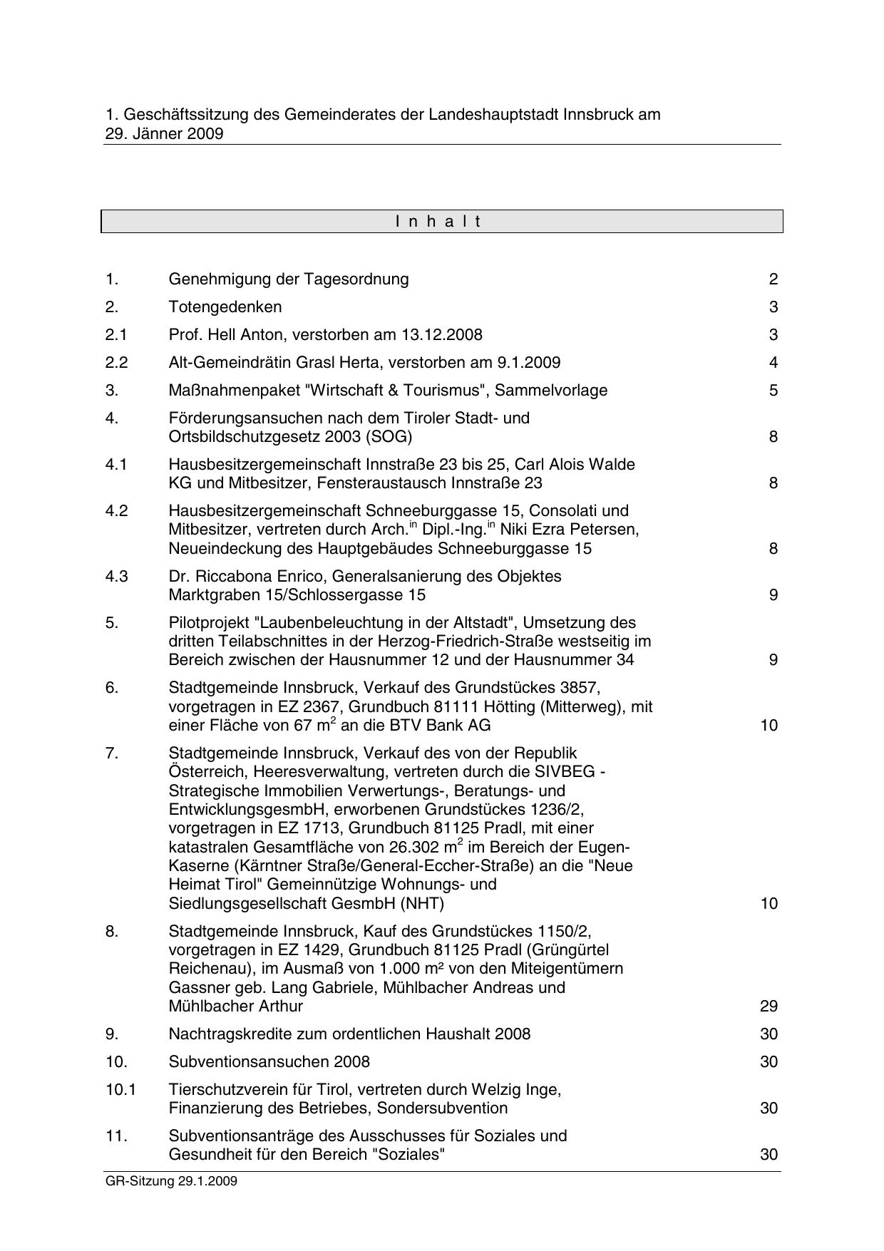 1. Geschäftssitzung des Gemeinderates der Landeshauptstadt Innsbruck am