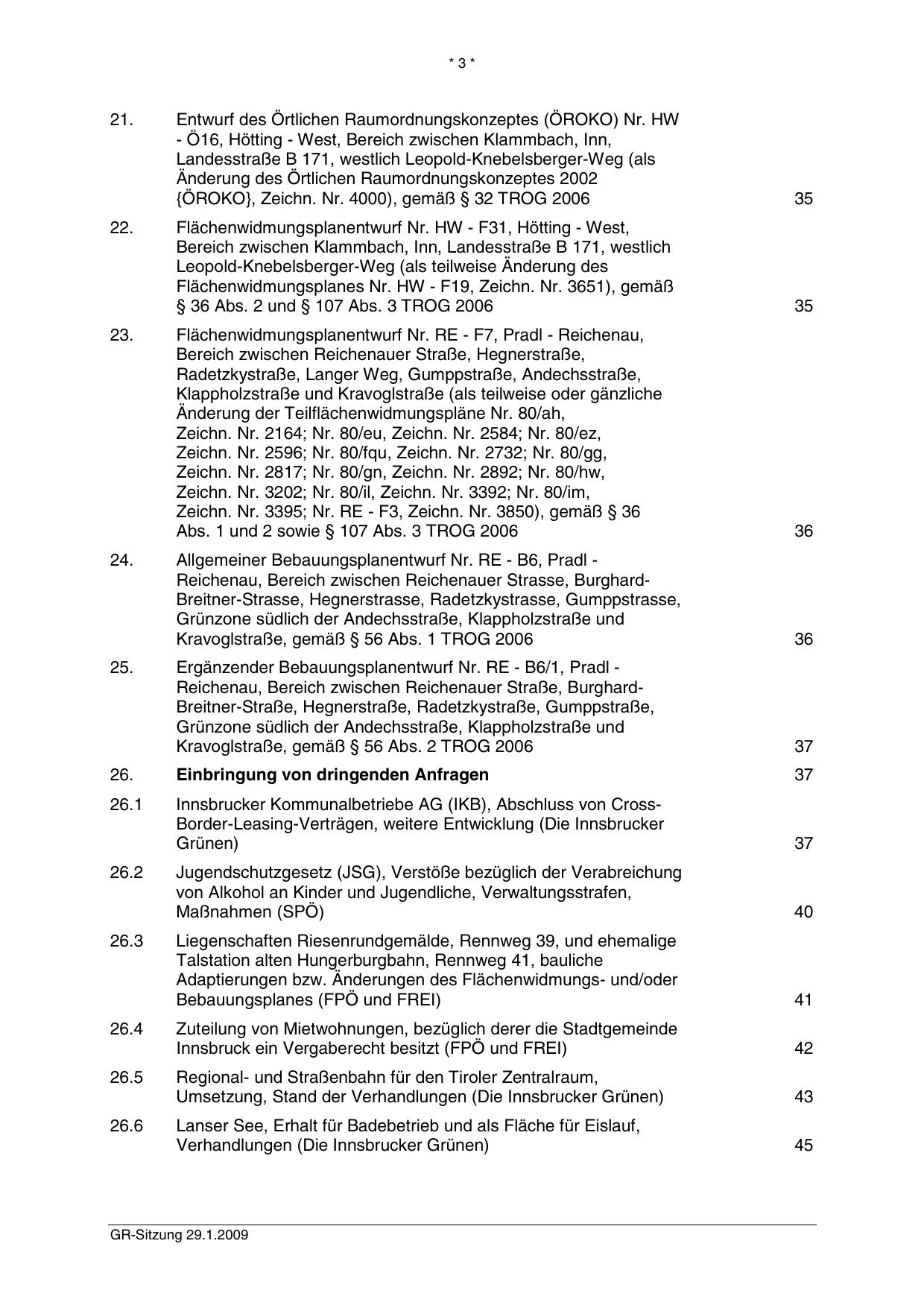 Innsbruck ein Vergaberecht besitzt (FPÖ und FREI)