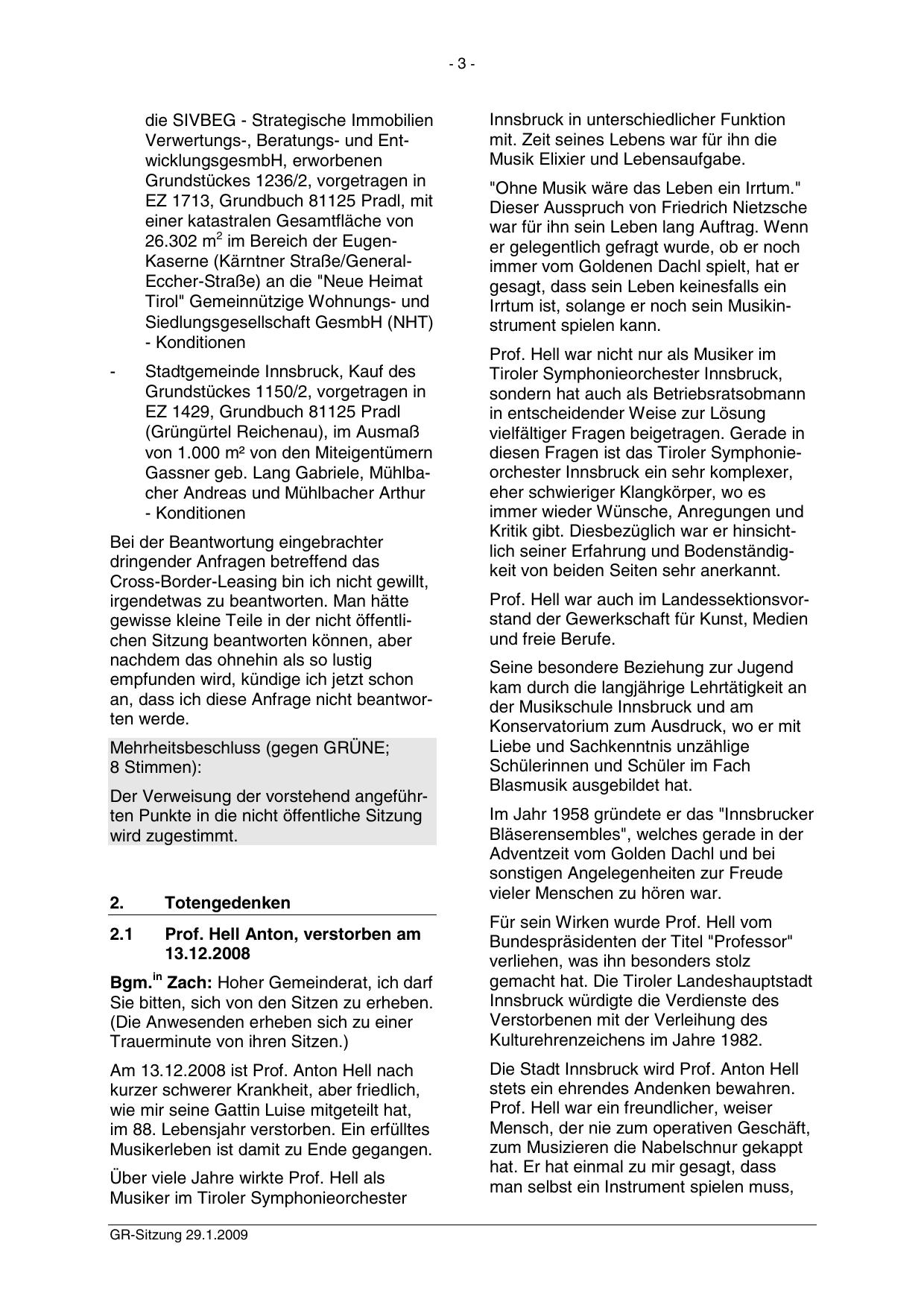 Bgm.in Zach: Hoher Gemeinderat, ich darf