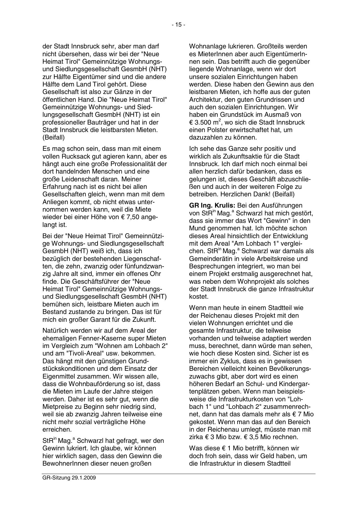 mit dem Areal "Am Lohbach 1" vergleichen. StRin Mag.a Schwarzl war damals als