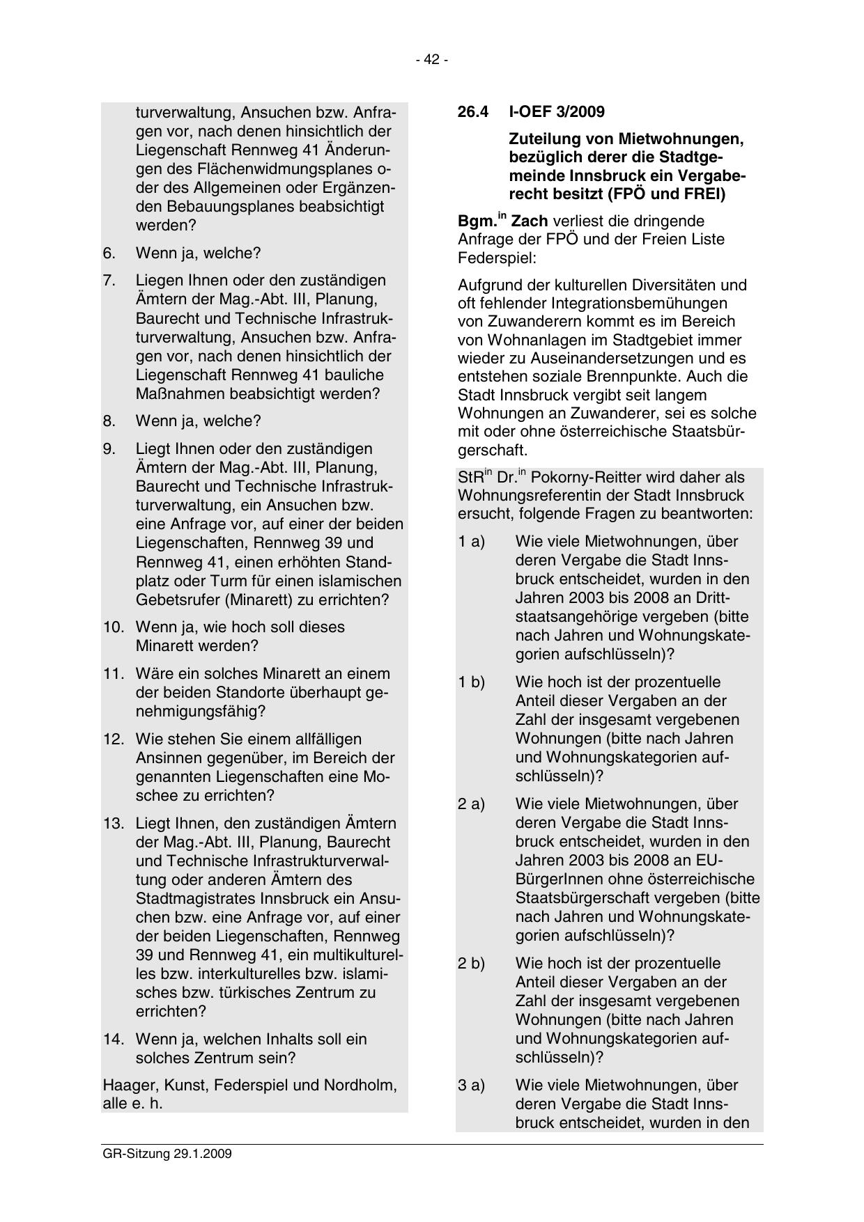 GR-Sitzung 29.1.2009