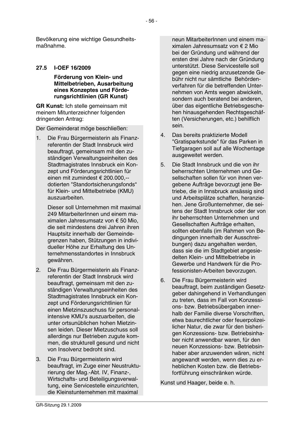 Stadtmagistrates Innsbruck ein Konzept und Förderungsrichtlinien für
