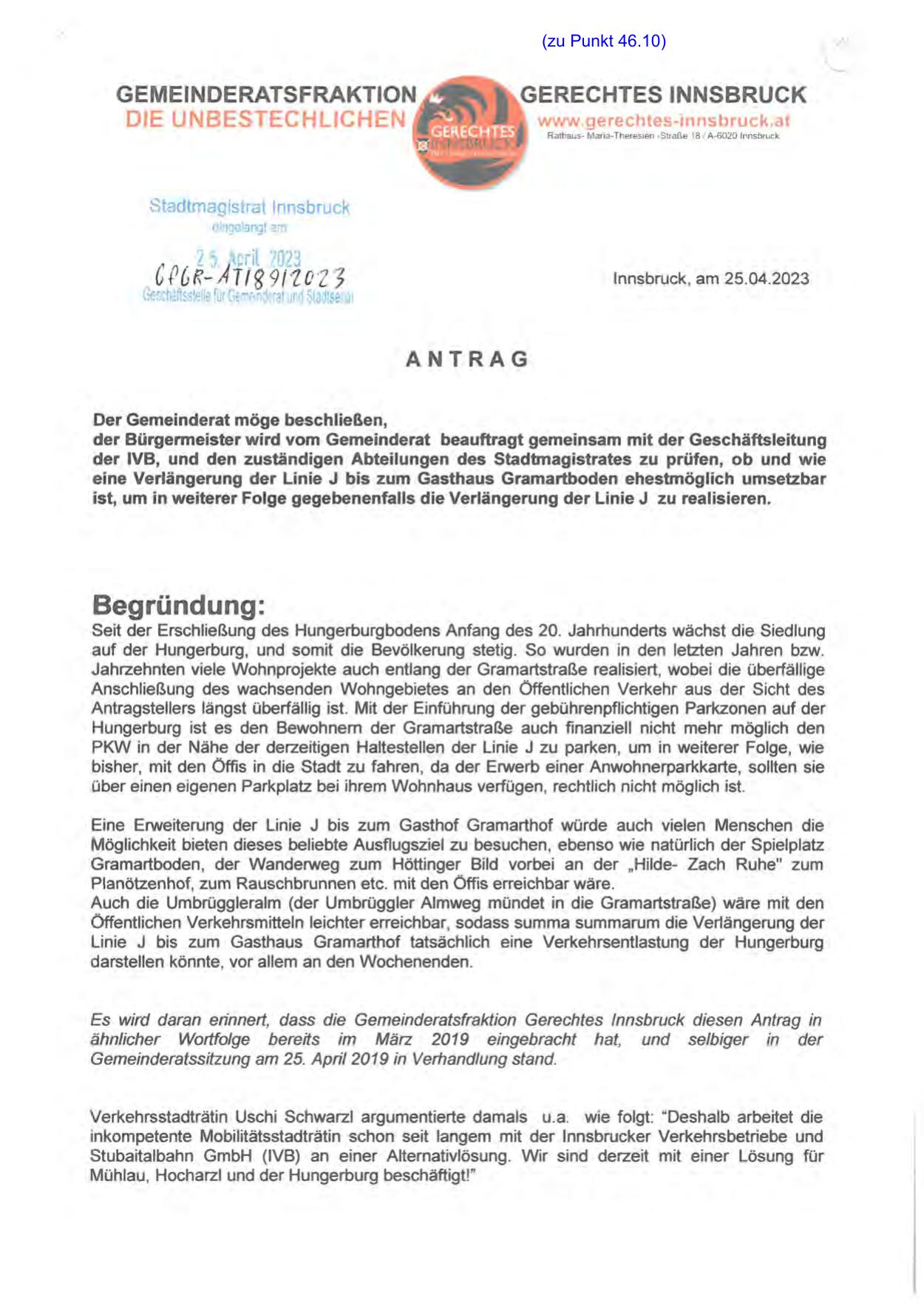 Es wird daran erinnert, dass die Gemeinderatsfraktion Gerechtes Innsbruck diesen Antrag in