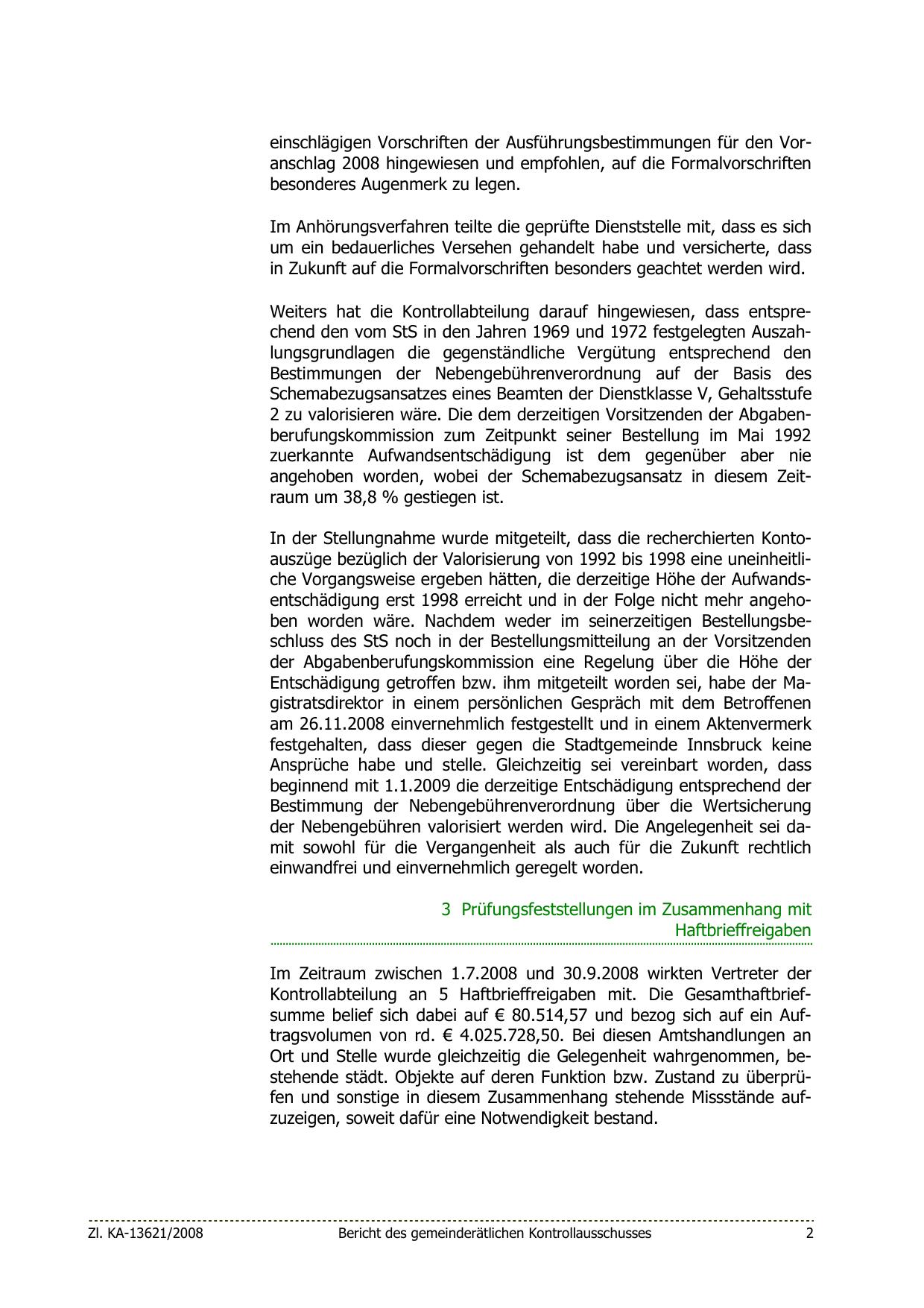 Kontrollabteilung an 5 Haftbrieffreigaben mit. Die Gesamthaftbriefsumme belief sich dabei auf € 80.514,57 und bezog sich auf ein Auftragsvolumen von rd. € 4.025.728,50. Bei diesen Amtshandlungen an