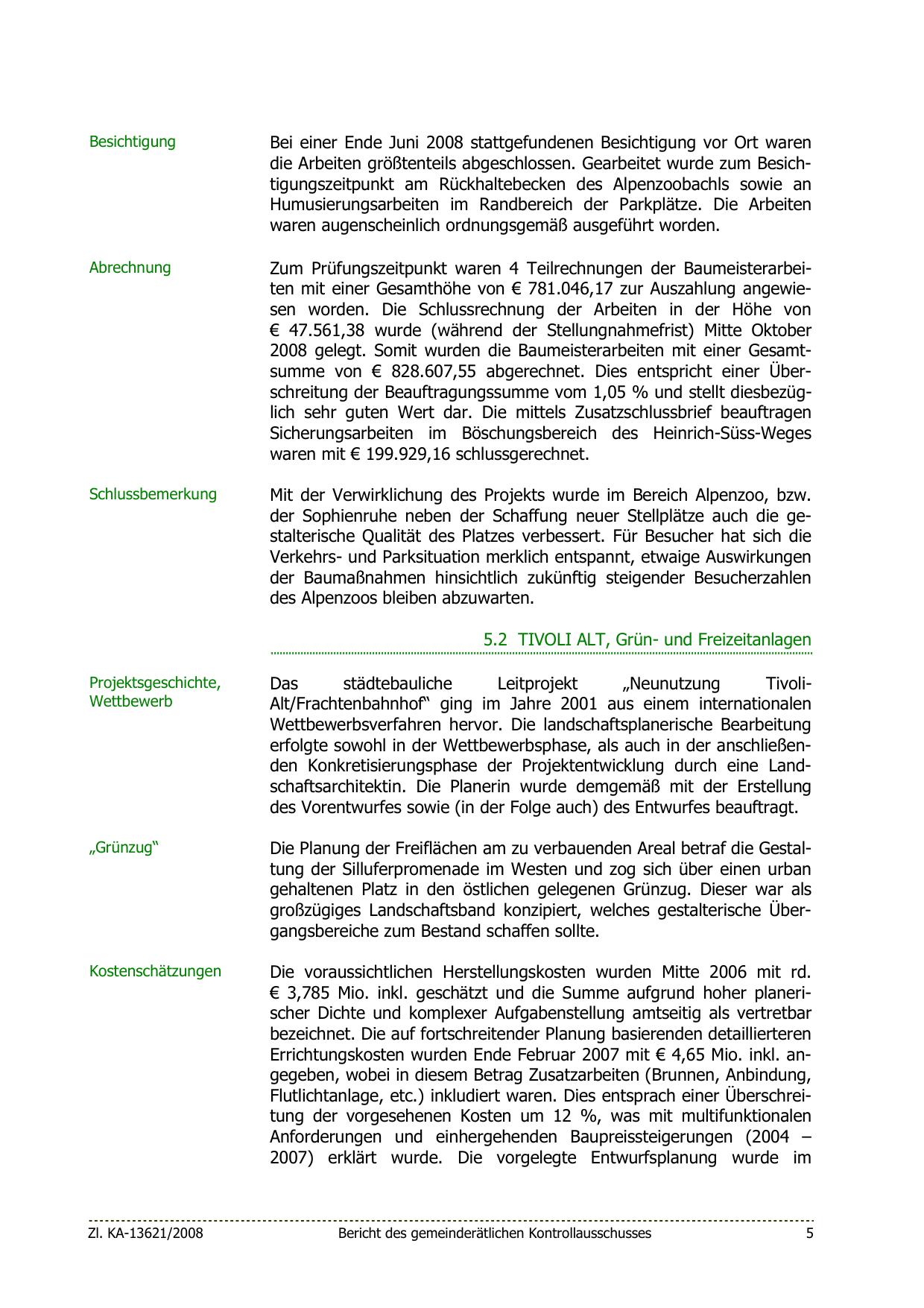 2008 gelegt. Somit wurden die Baumeisterarbeiten mit einer Gesamtsumme von € 828.607,55 abgerechnet. Dies entspricht einer Überschreitung der Beauftragungssumme vom 1,05 % und stellt diesbezüglich sehr guten Wert dar. Die mittels Zusatzschlussbrief beauftragen