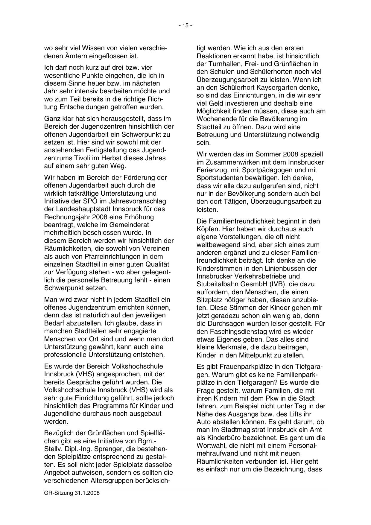 verschiedenen Altersgruppen berücksichGR-Sitzung 31.1.2008