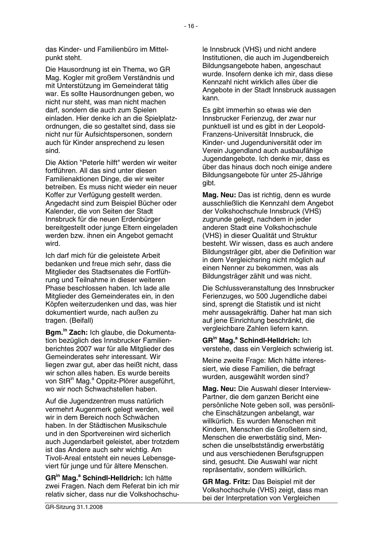 Bgm.in Zach: Ich glaube, die Dokumentation bezüglich des Innsbrucker Familienberichtes 2007 war für alle Mitglieder des