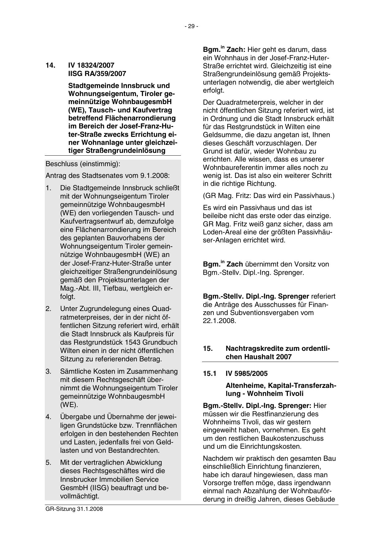 GR-Sitzung 31.1.2008