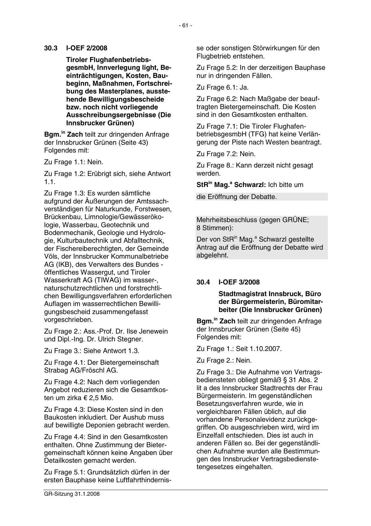 Zu Frage 7.1: Die Tiroler FlughafenbetriebsgesmbH (TFG) hat keine Verlängerung der Piste nach Westen beantragt.