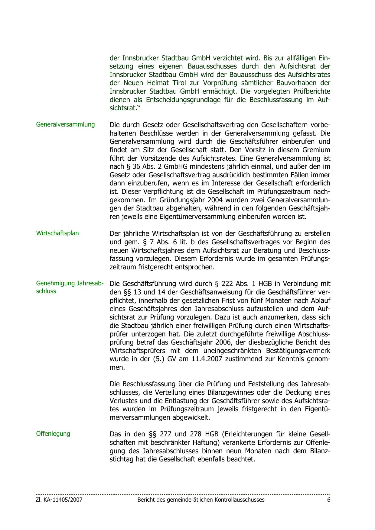 Innsbrucker Stadtbau GmbH ermächtigt. Die vorgelegten Prüfberichte