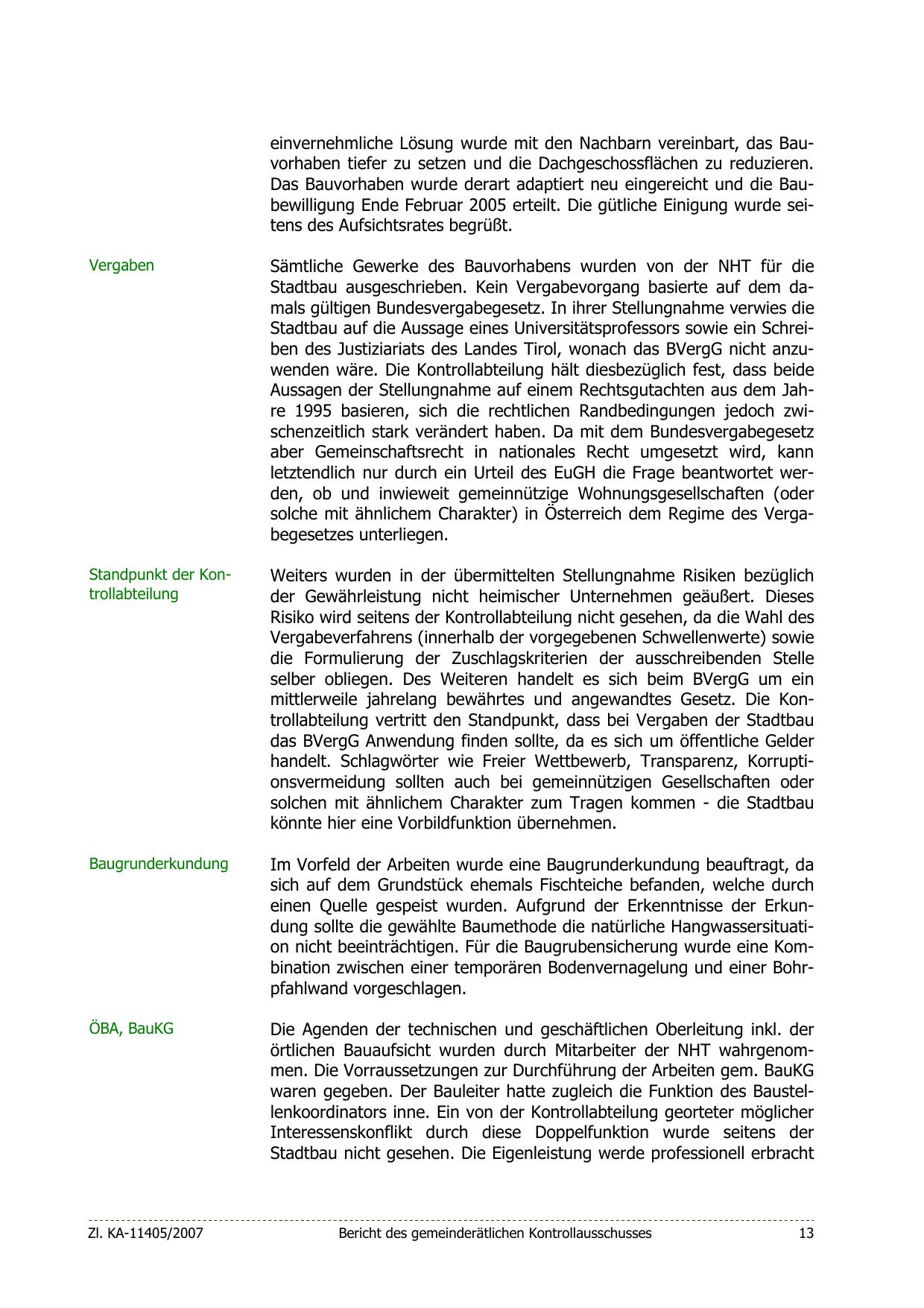 mittlerweile jahrelang bewährtes und angewandtes Gesetz. Die Kontrollabteilung vertritt den Standpunkt, dass bei Vergaben der Stadtbau