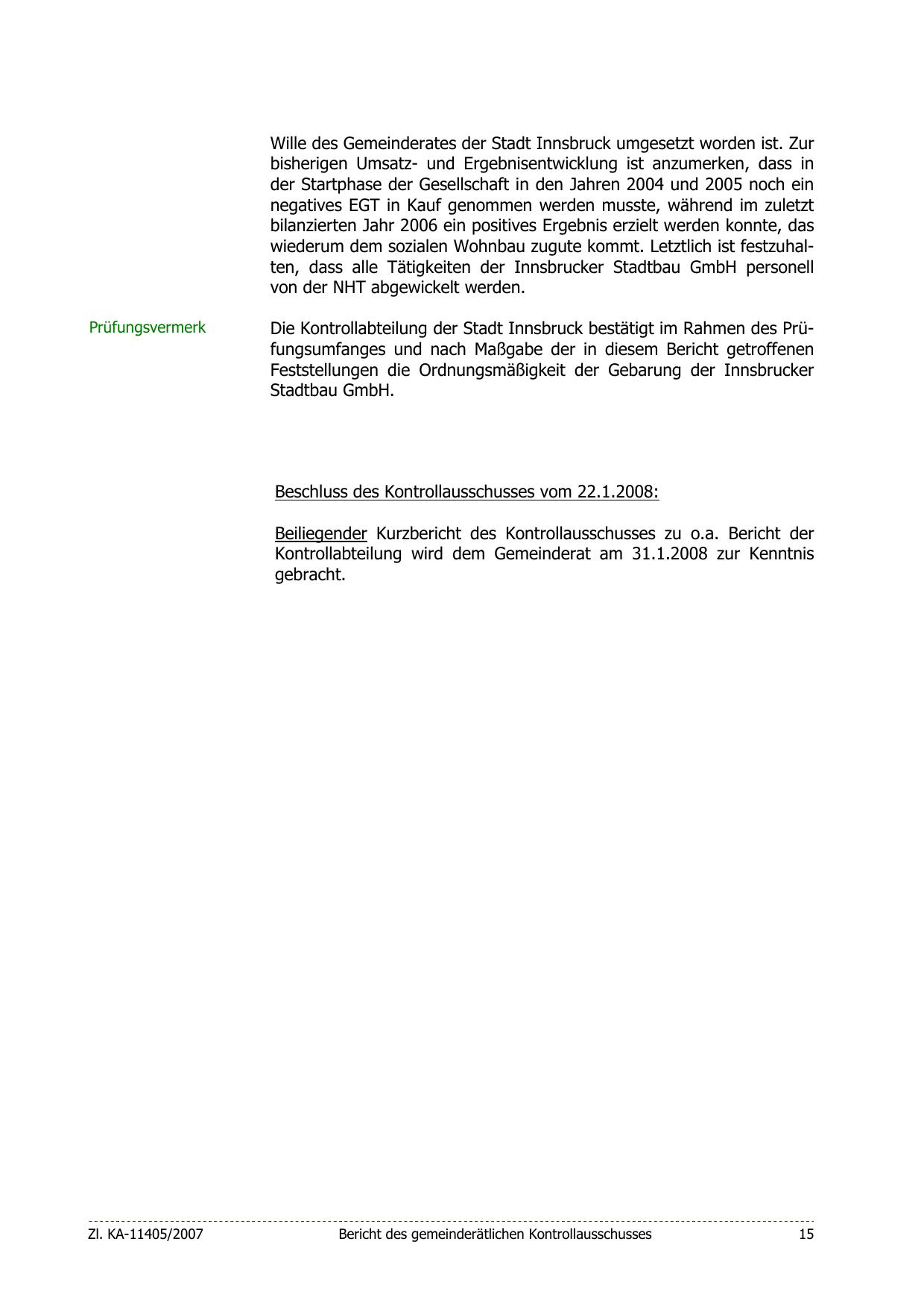Beschluss des Kontrollausschusses vom 22.1.2008: