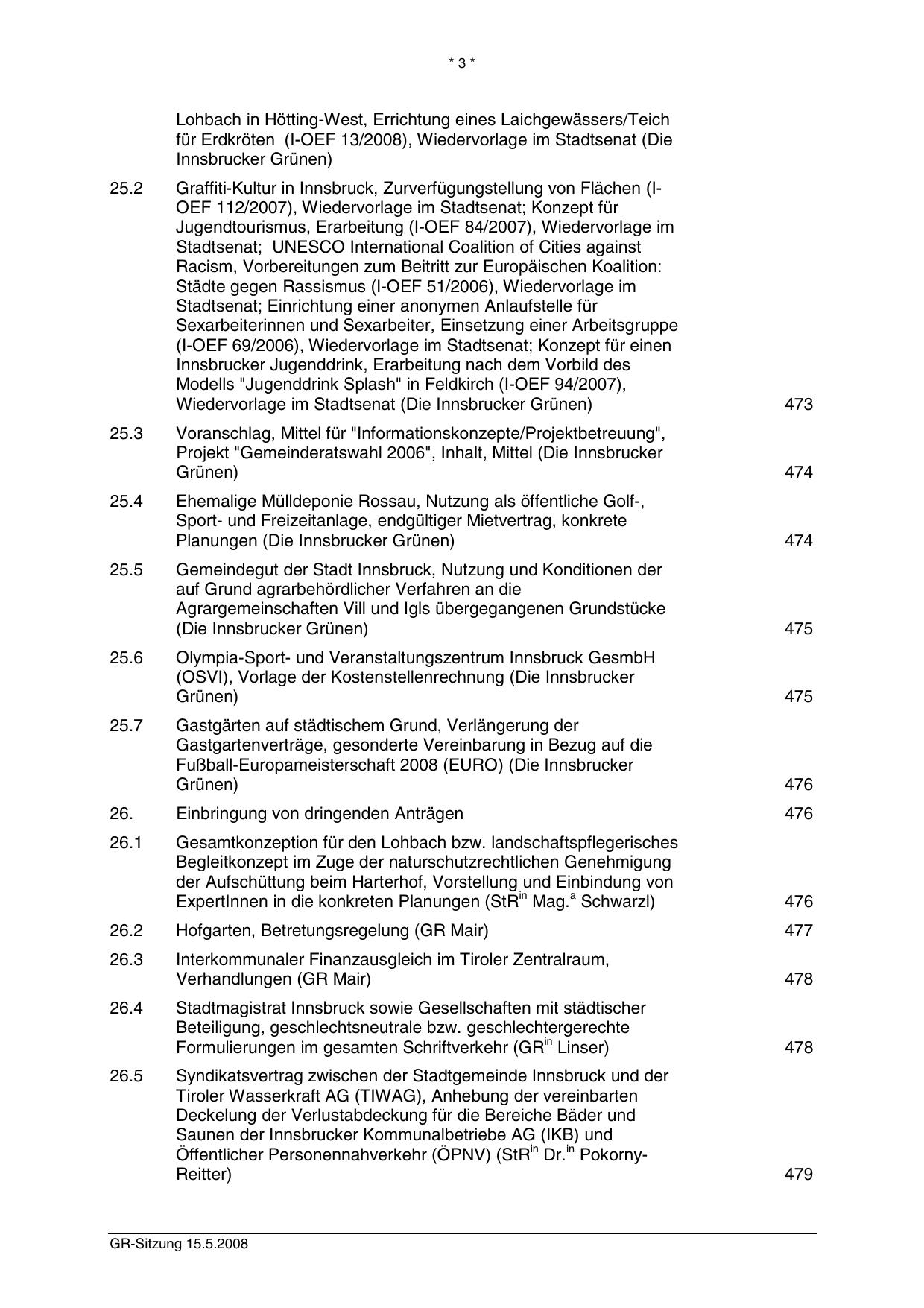 Wiedervorlage im Stadtsenat (Die Innsbrucker Grünen)