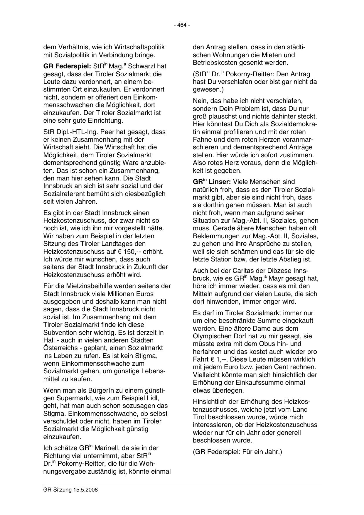 GR Federspiel: StRin Mag.a Schwarzl hat