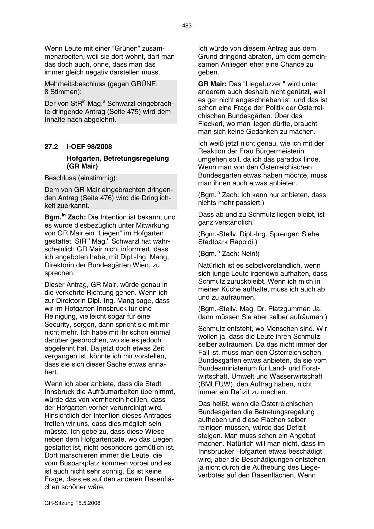 gestattet. StRin Mag.a Schwarzl hat wahrscheinlich GR Mair nicht informiert, dass