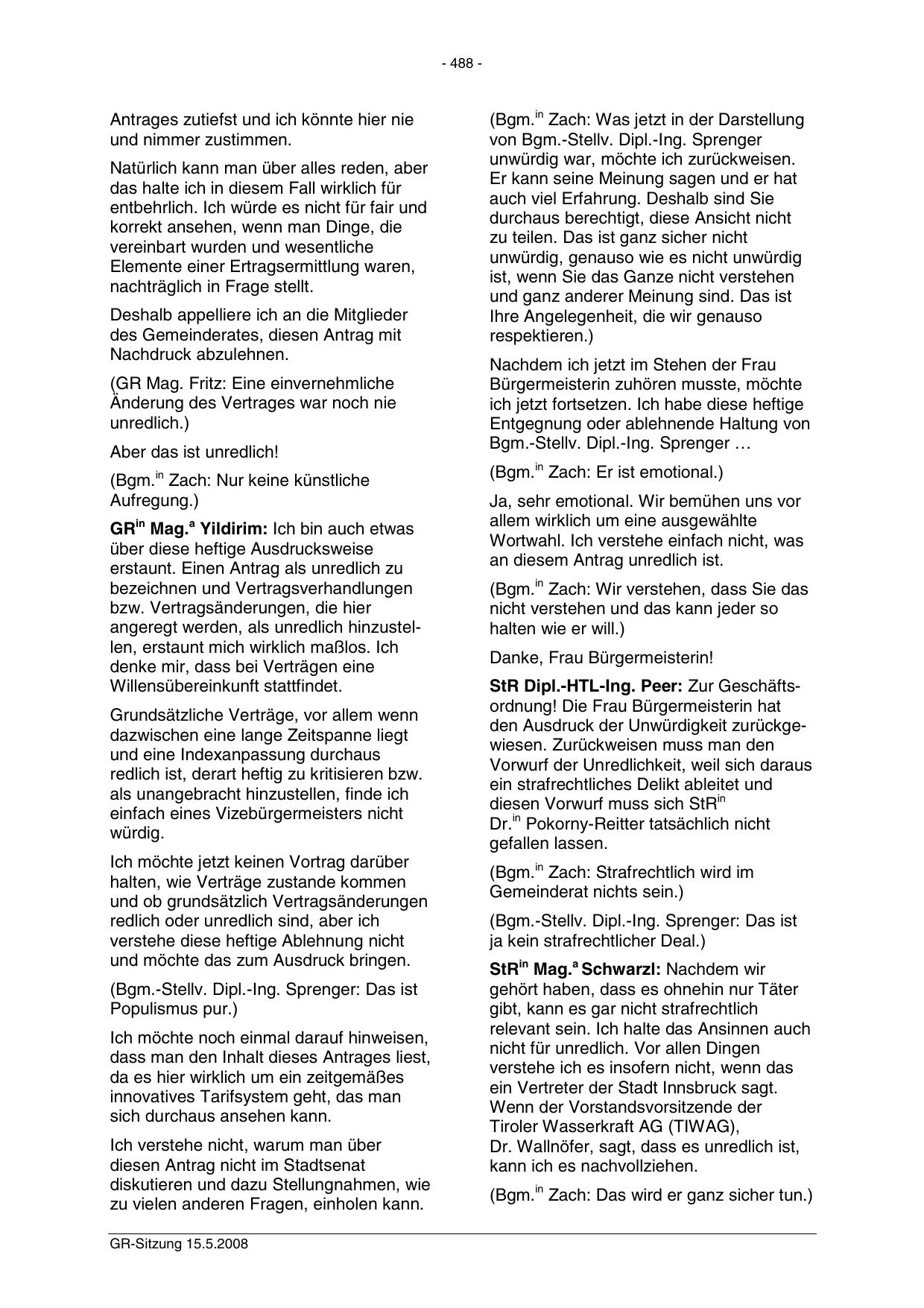 StR Dipl.-HTL-Ing. Peer: Zur Geschäftsordnung! Die Frau Bürgermeisterin hat