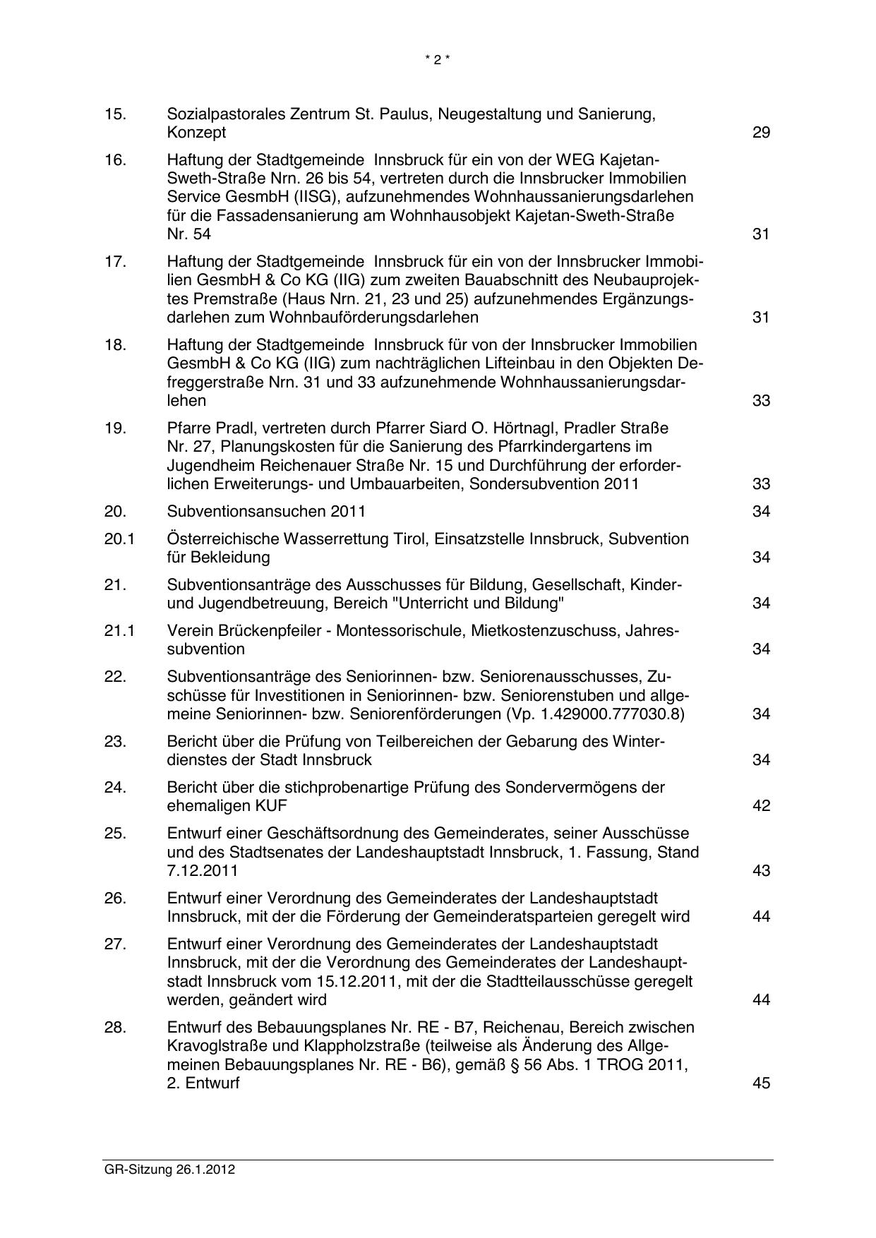 und des Stadtsenates der Landeshauptstadt Innsbruck, 1. Fassung, Stand