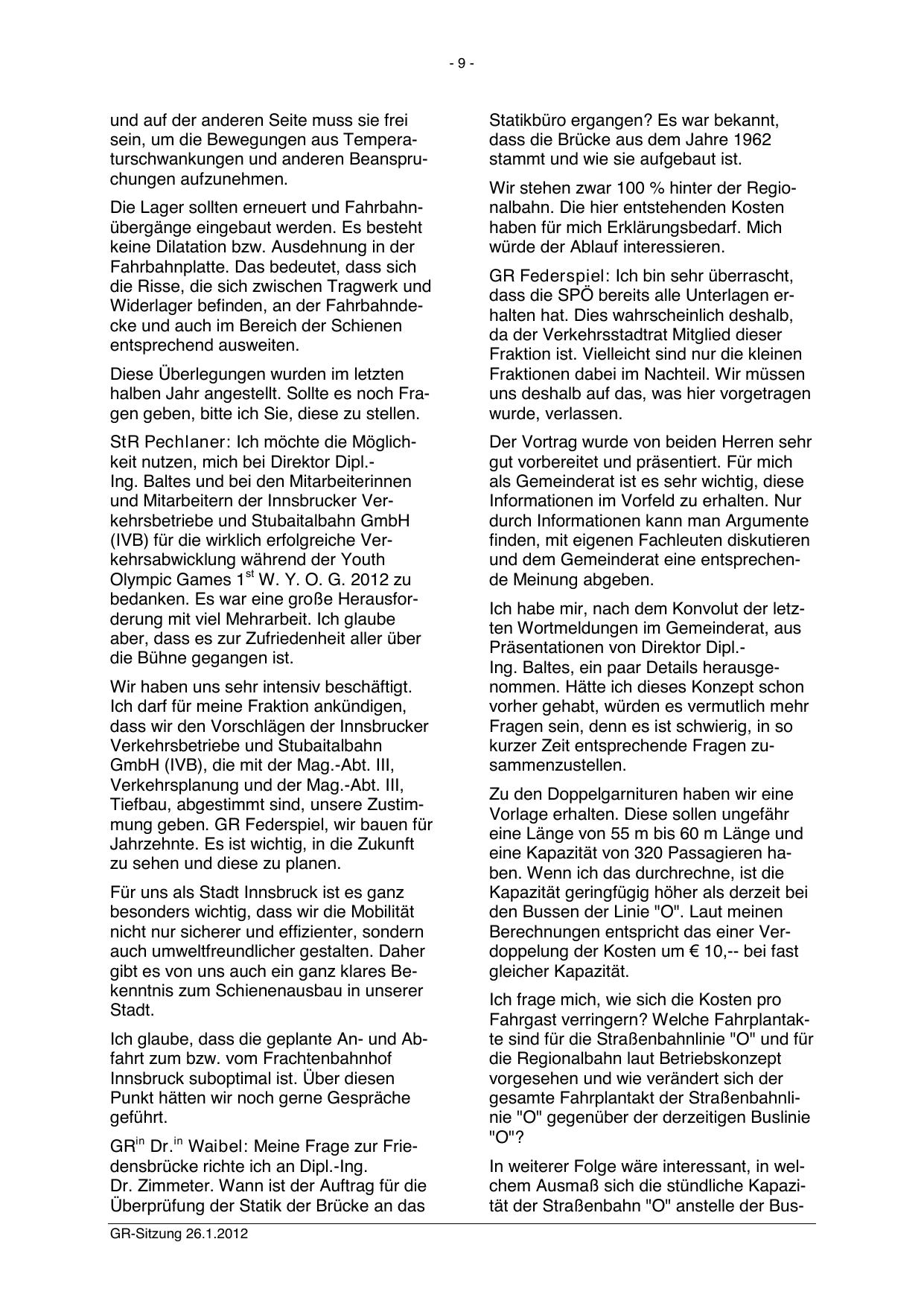 StR Pechlaner: Ich möchte die Möglichkeit nutzen, mich bei Direktor Dipl.Ing. Baltes und bei den Mitarbeiterinnen