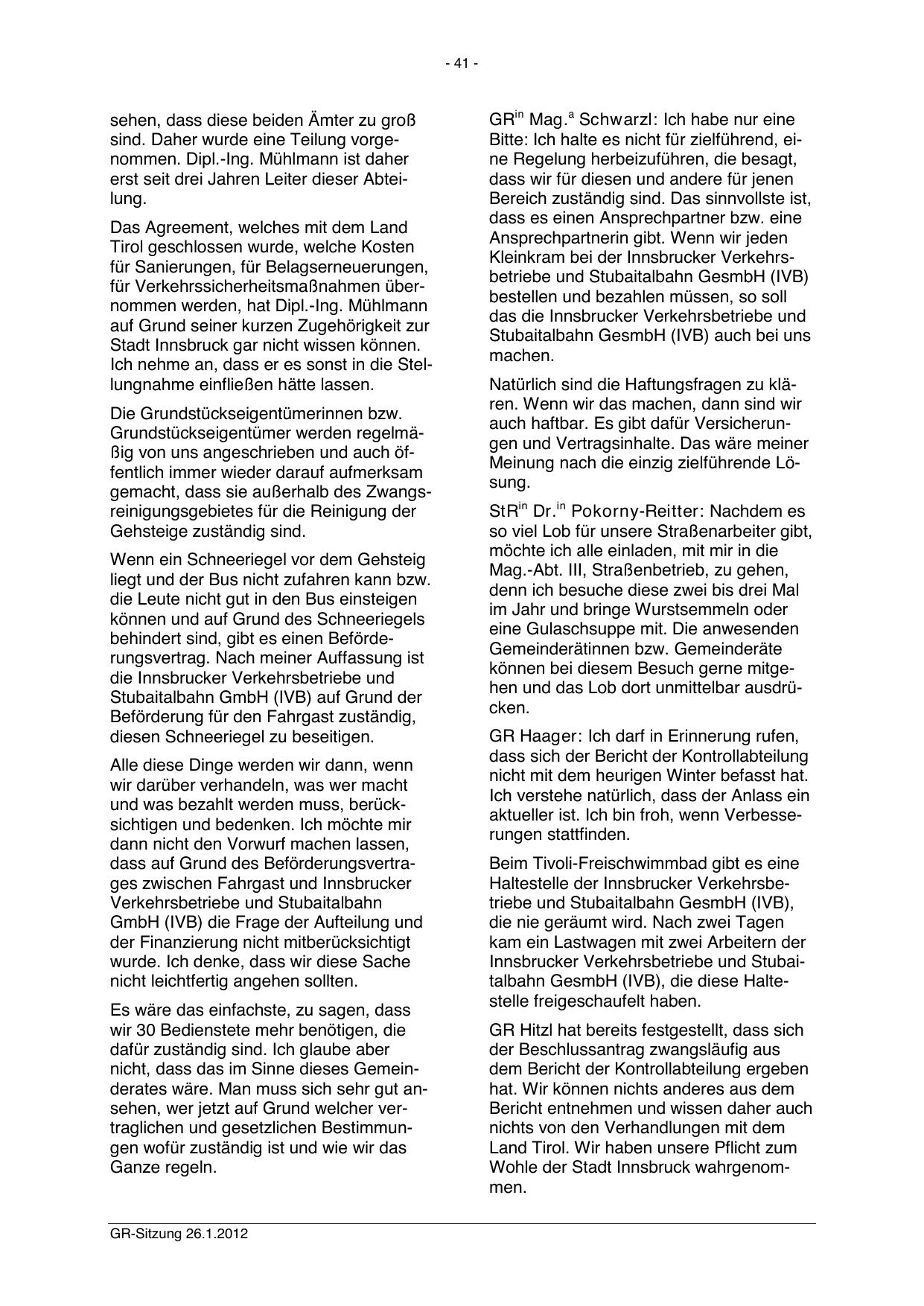 nicht, dass das im Sinne dieses Gemeinderates wäre. Man muss sich sehr gut ansehen, wer jetzt auf Grund welcher vertraglichen und gesetzlichen Bestimmungen wofür zuständig ist und wie wir das