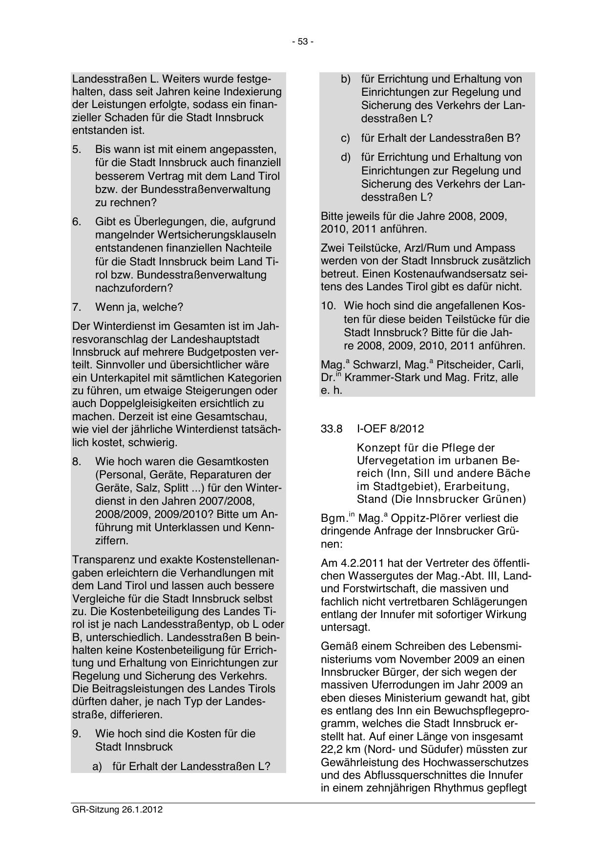 für die Stadt Innsbruck beim Land Tirol bzw. Bundesstraßenverwaltung