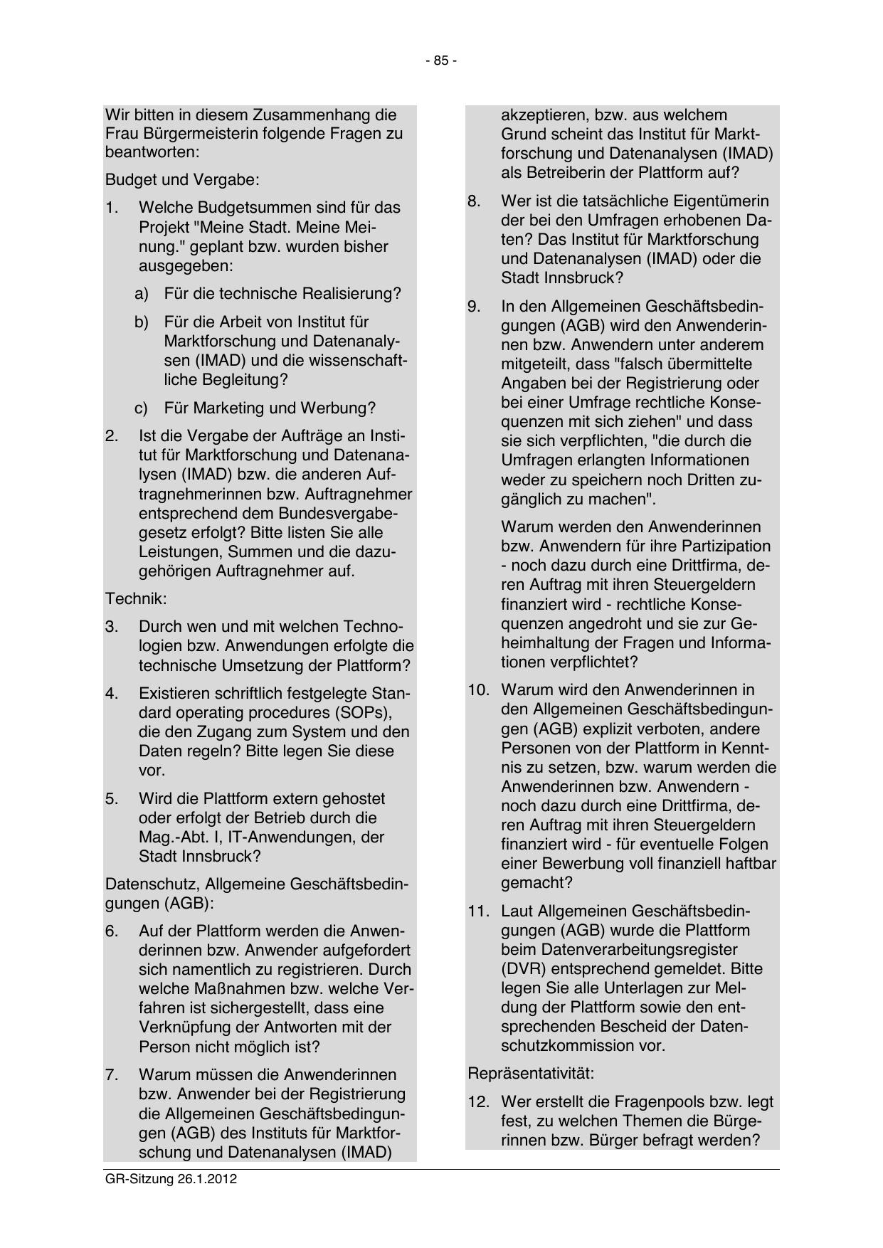 fest, zu welchen Themen die Bürgerinnen bzw. Bürger befragt werden?
