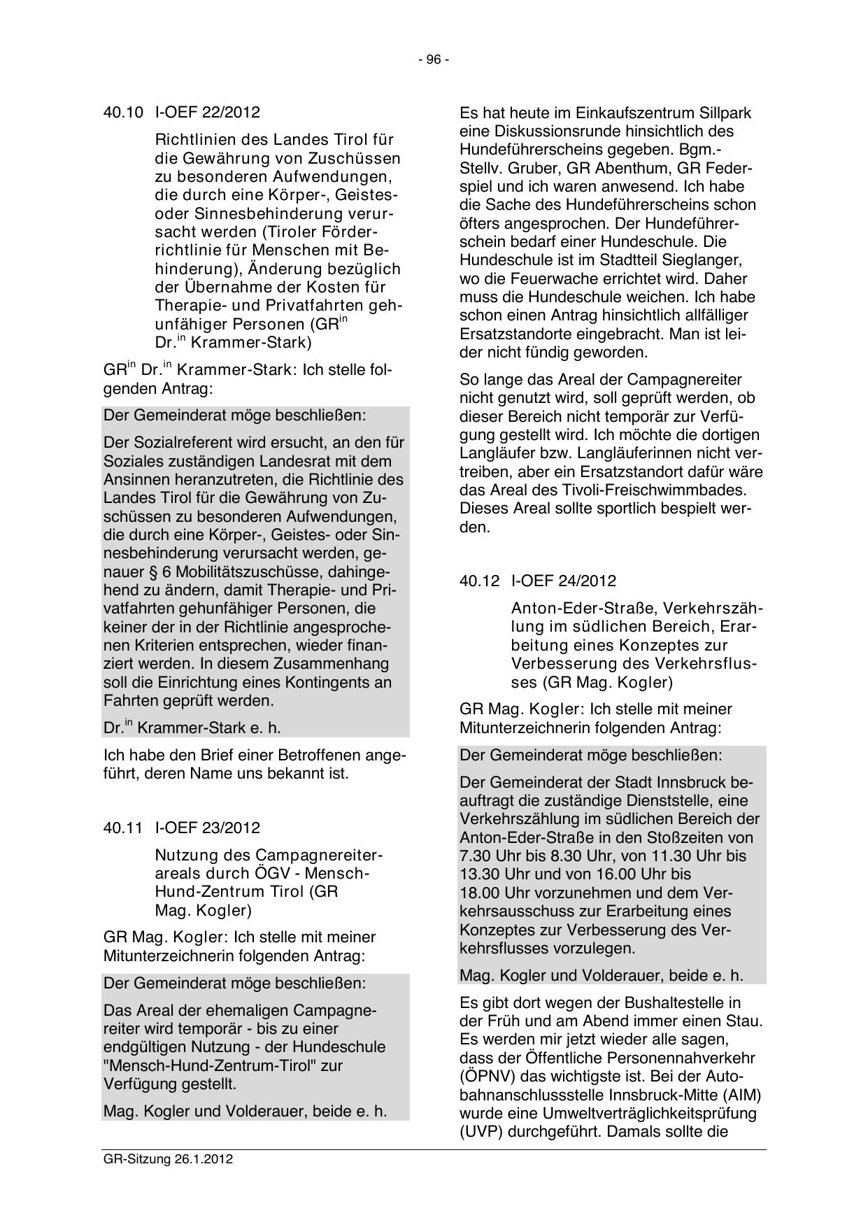 Der Gemeinderat der Stadt Innsbruck beauftragt die zuständige Dienststelle, eine