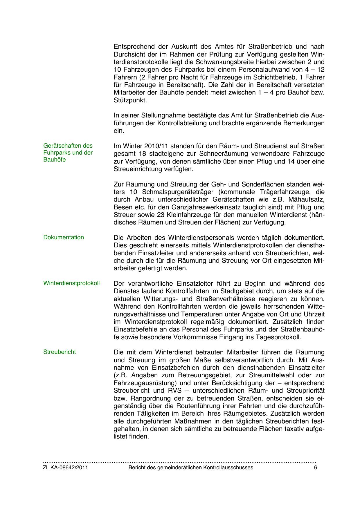 Dies geschieht einerseits mittels Winterdienstprotokollen der diensthabenden Einsatzleiter und andererseits anhand von Streuberichten, welche durch die für die Räumung und Streuung vor Ort eingesetzten Mitarbeiter gefertigt werden.