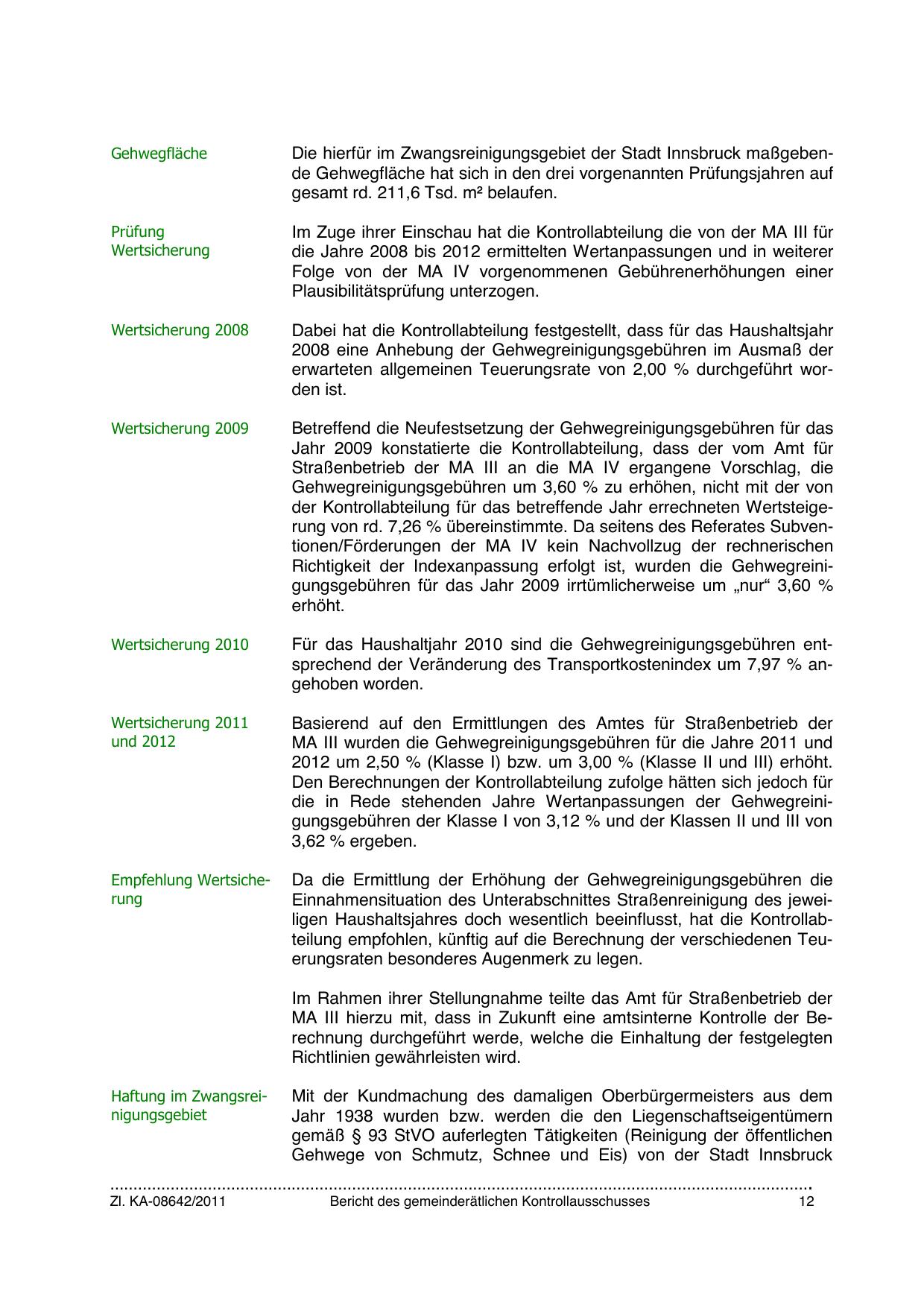 MA III wurden die Gehwegreinigungsgebühren für die Jahre 2011 und