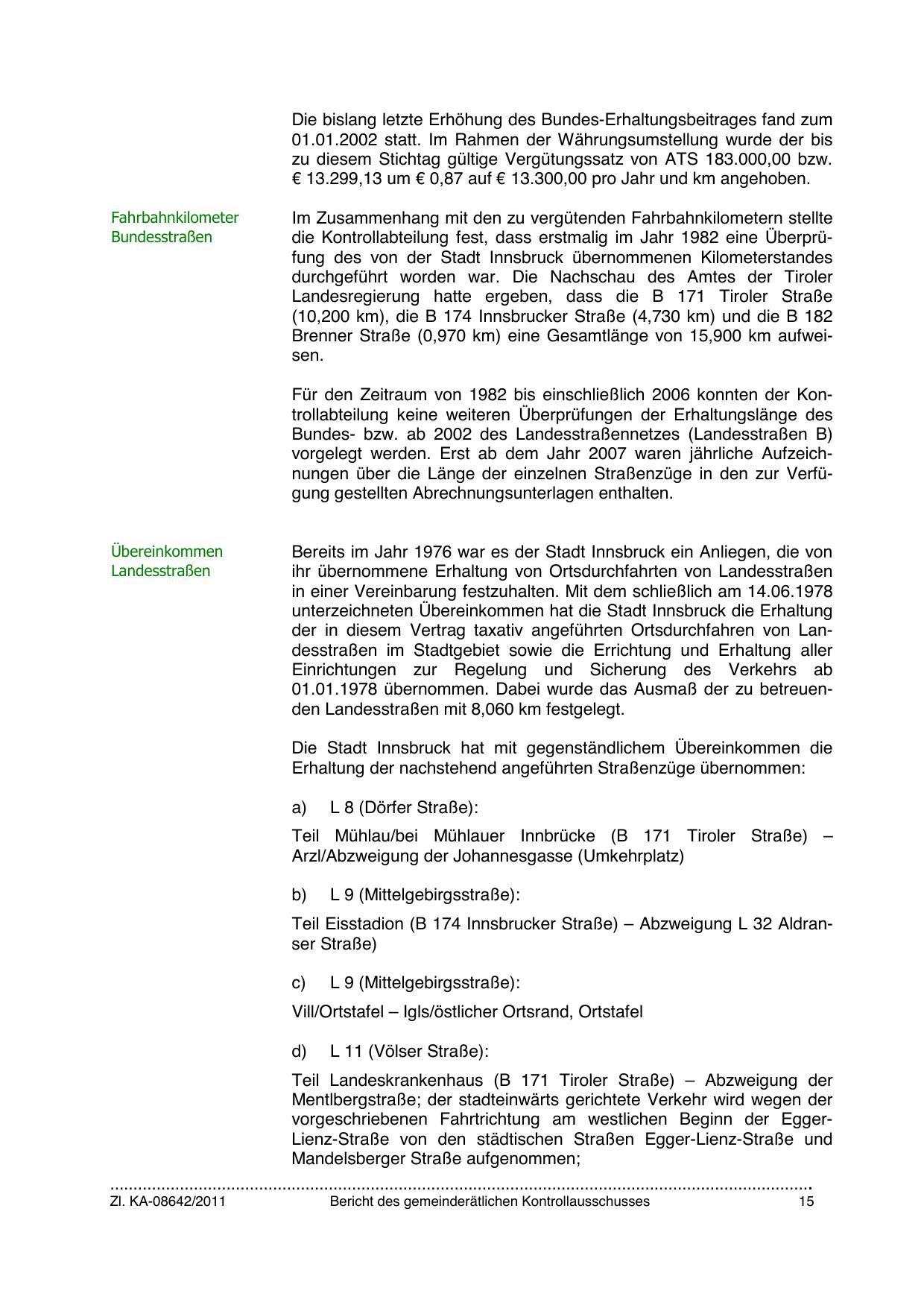 die Kontrollabteilung fest, dass erstmalig im Jahr 1982 eine Überprüfung des von der Stadt Innsbruck übernommenen Kilometerstandes