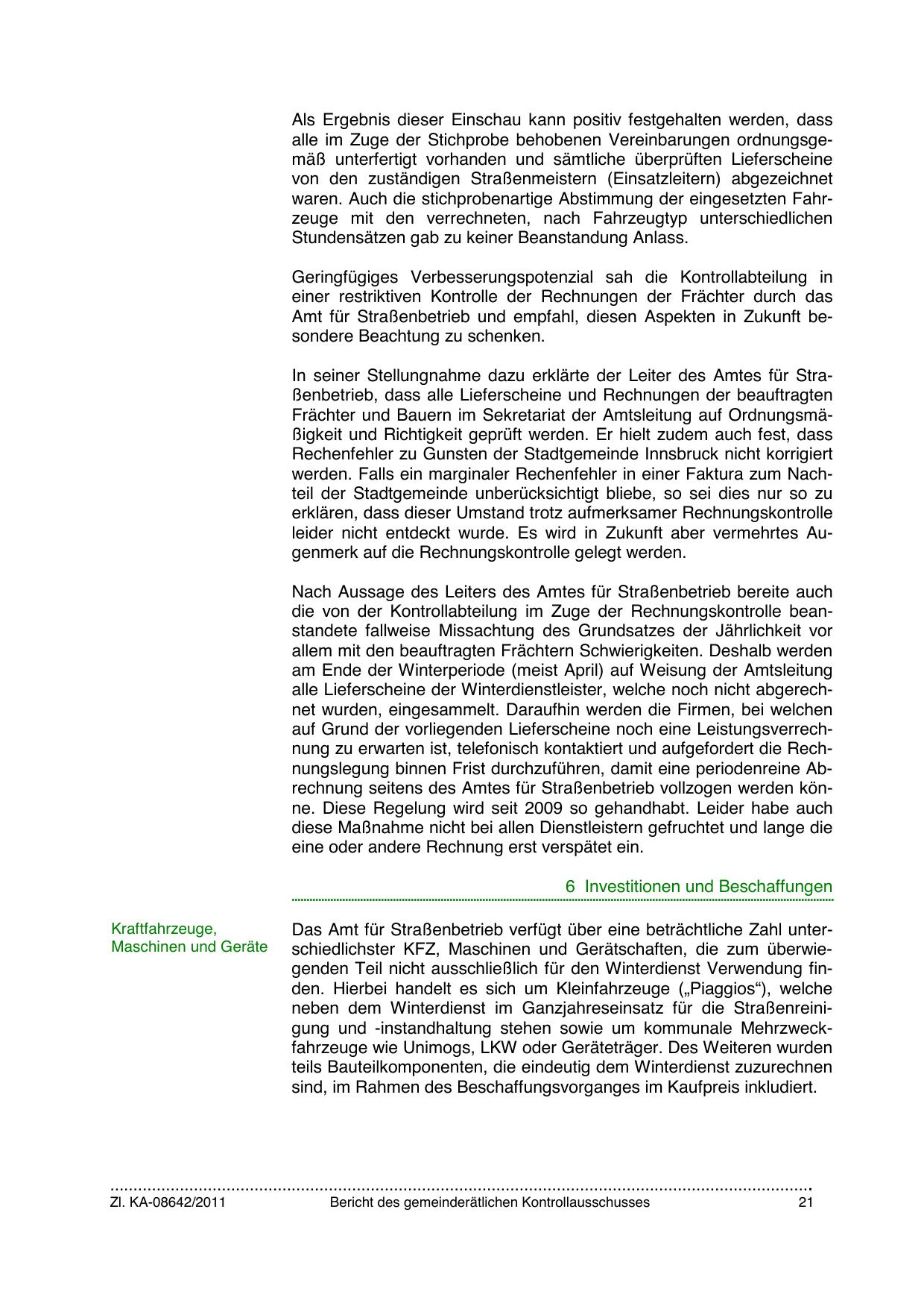 auf Grund der vorliegenden Lieferscheine noch eine Leistungsverrechnung zu erwarten ist, telefonisch kontaktiert und aufgefordert die Rechnungslegung binnen Frist durchzuführen, damit eine periodenreine Abrechnung seitens des Amtes für Straßenbetrieb vollzogen werden könne. Diese Regelung wird seit 2009 so gehandhabt. Leider habe auch