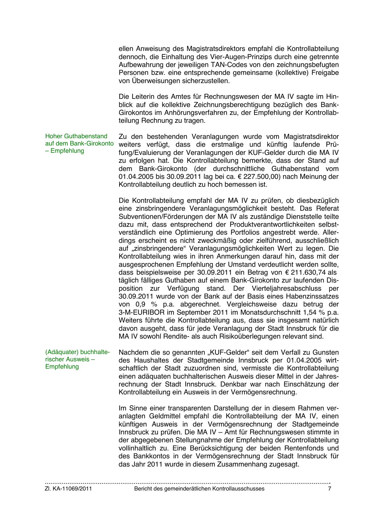 Innsbruck zu prüfen. Die MA IV – Amt für Rechnungswesen stimmte in