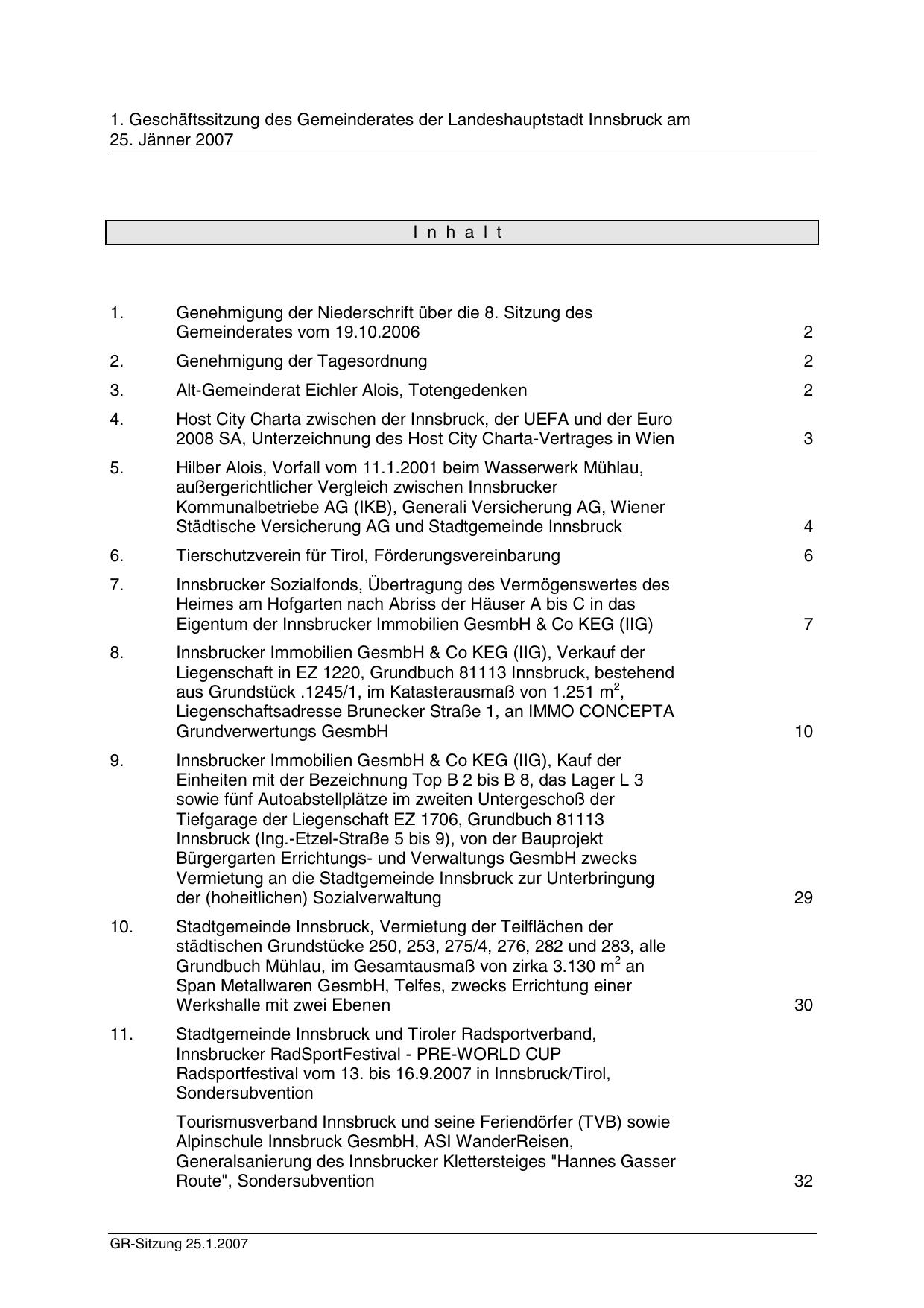 1. Geschäftssitzung des Gemeinderates der Landeshauptstadt Innsbruck am