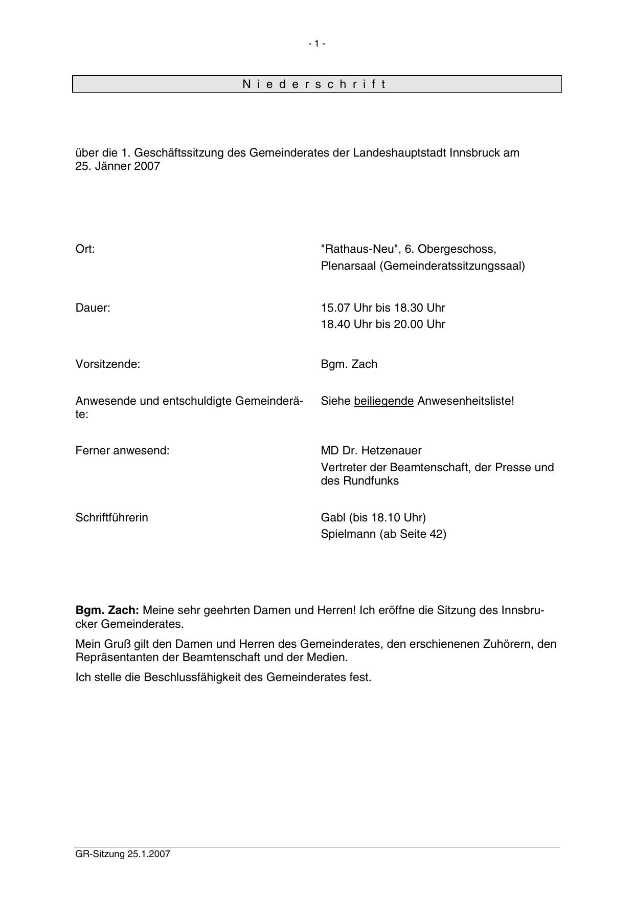 GR-Sitzung 25.1.2007