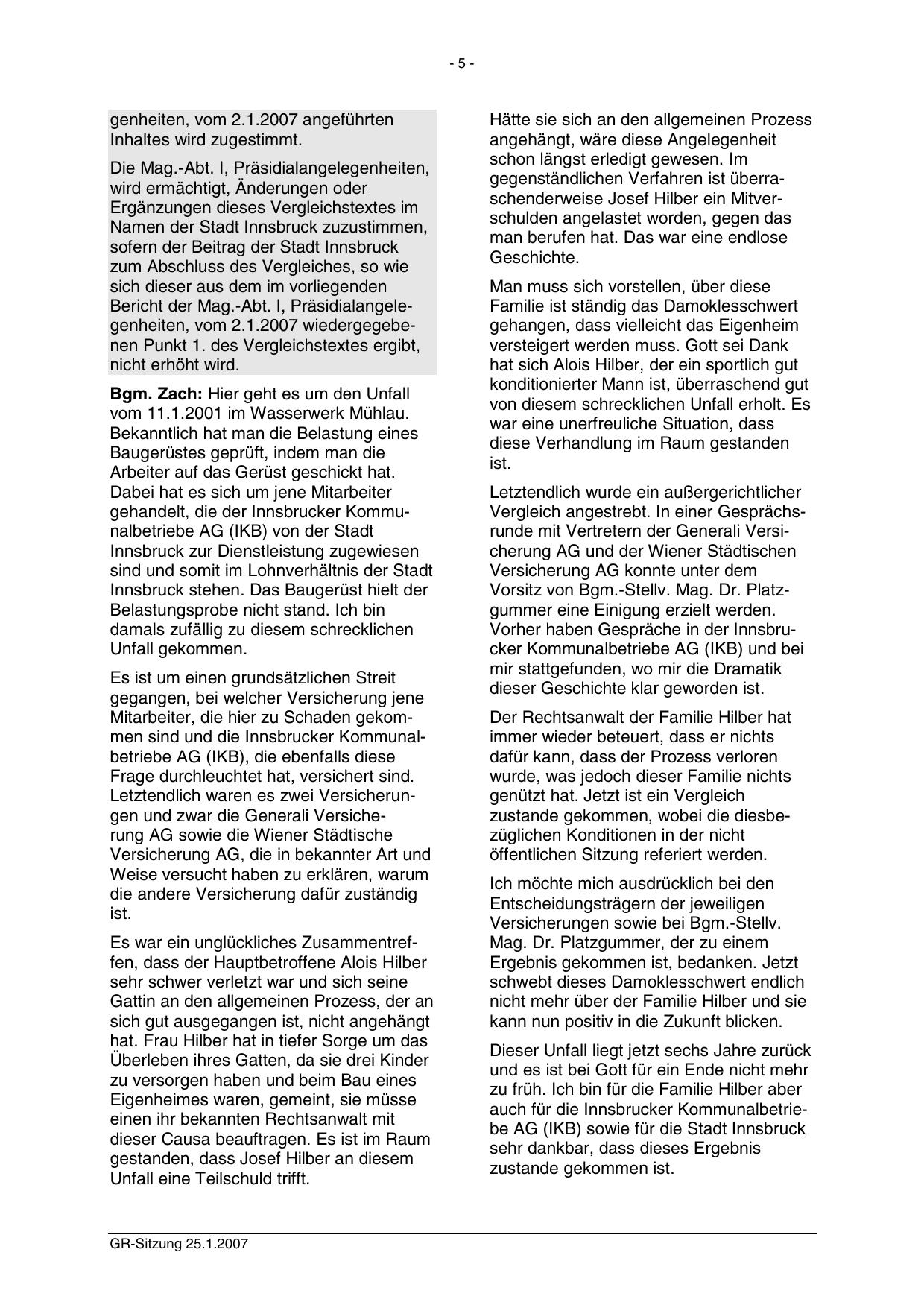 Bericht der Mag.-Abt. I, Präsidialangelegenheiten, vom 2.1.2007 wiedergegebenen Punkt 1. des Vergleichstextes ergibt,