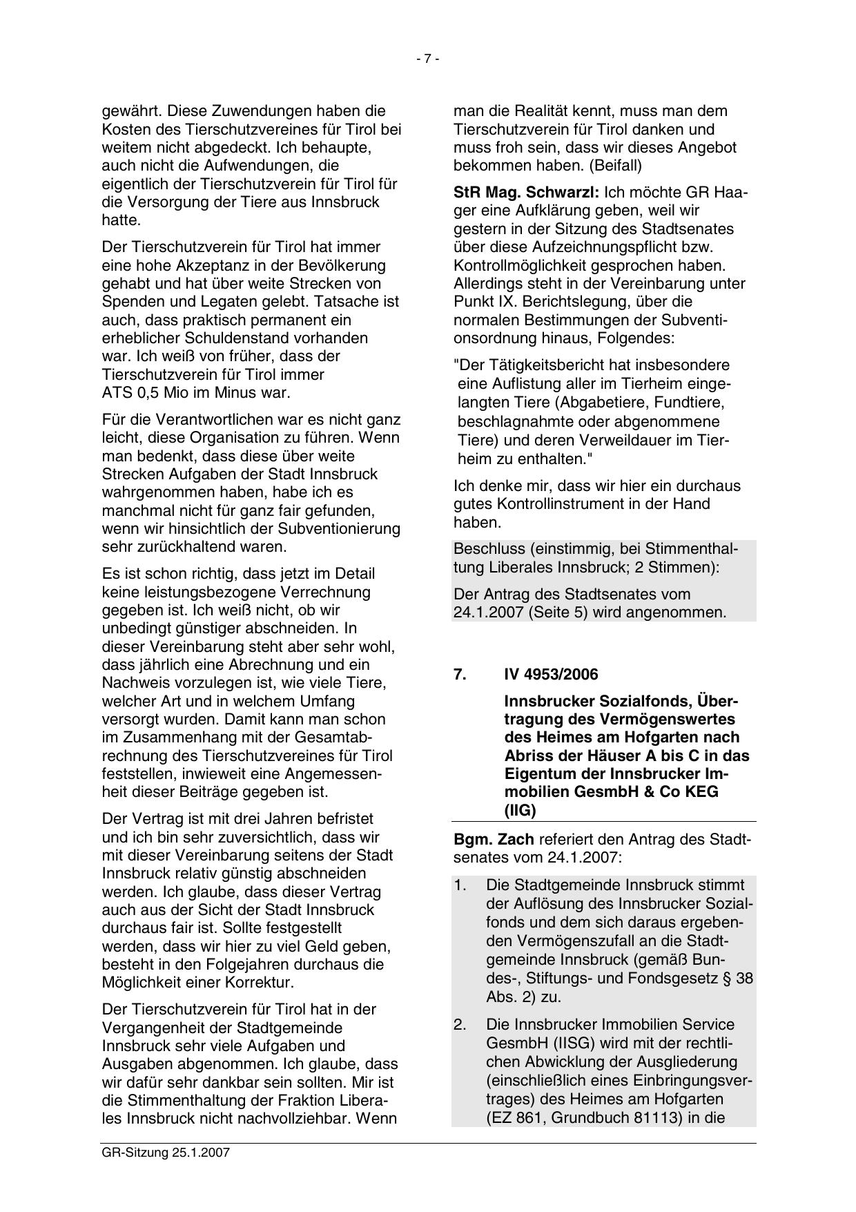 Beschluss (einstimmig, bei Stimmenthaltung Liberales Innsbruck; 2 Stimmen):
