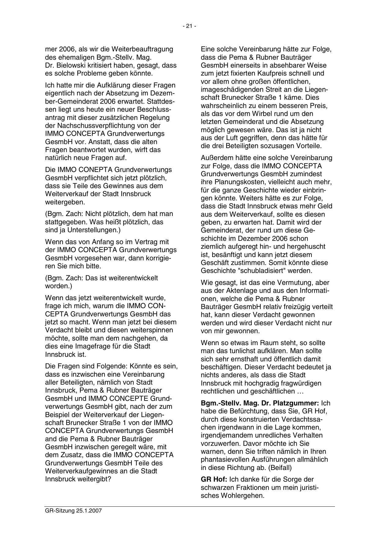 Bgm.-Stellv. Mag. Dr. Platzgummer: Ich