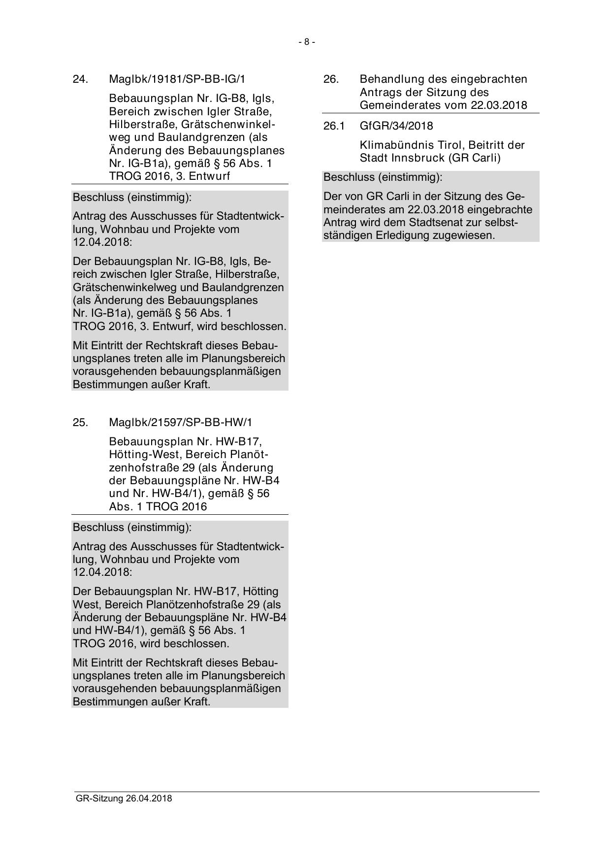 Der Bebauungsplan Nr. IG-B8, Igls, Bereich zwischen Igler Straße, Hilberstraße,