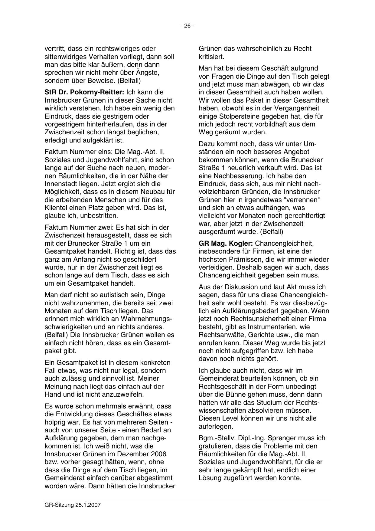 Eindruck, dass sich, aus mir nicht nachvollziehbaren Gründen, die Innsbrucker