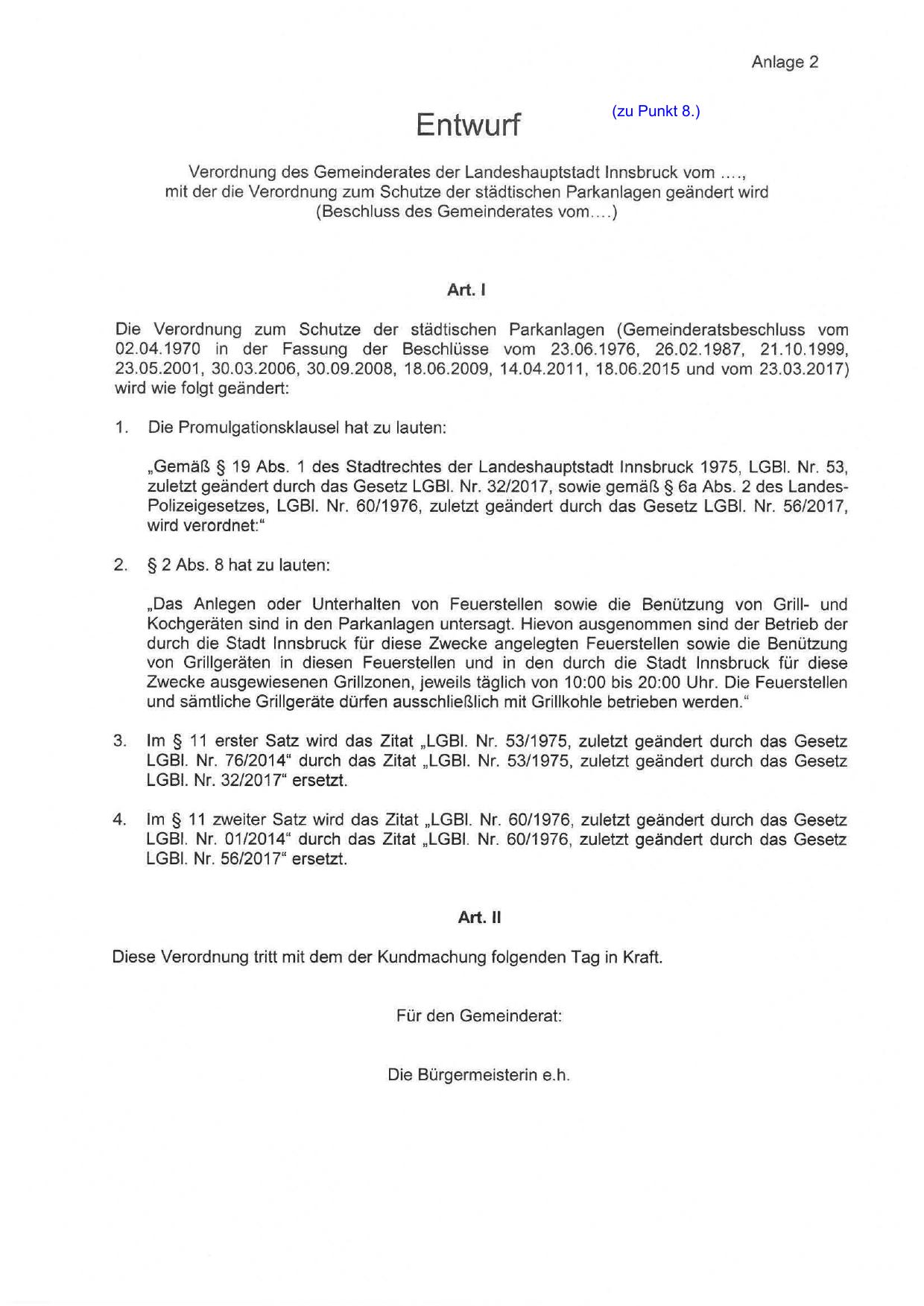 Verordnung des Gemeinderates der Landeshauptstadt Innsbruck vom .... ,