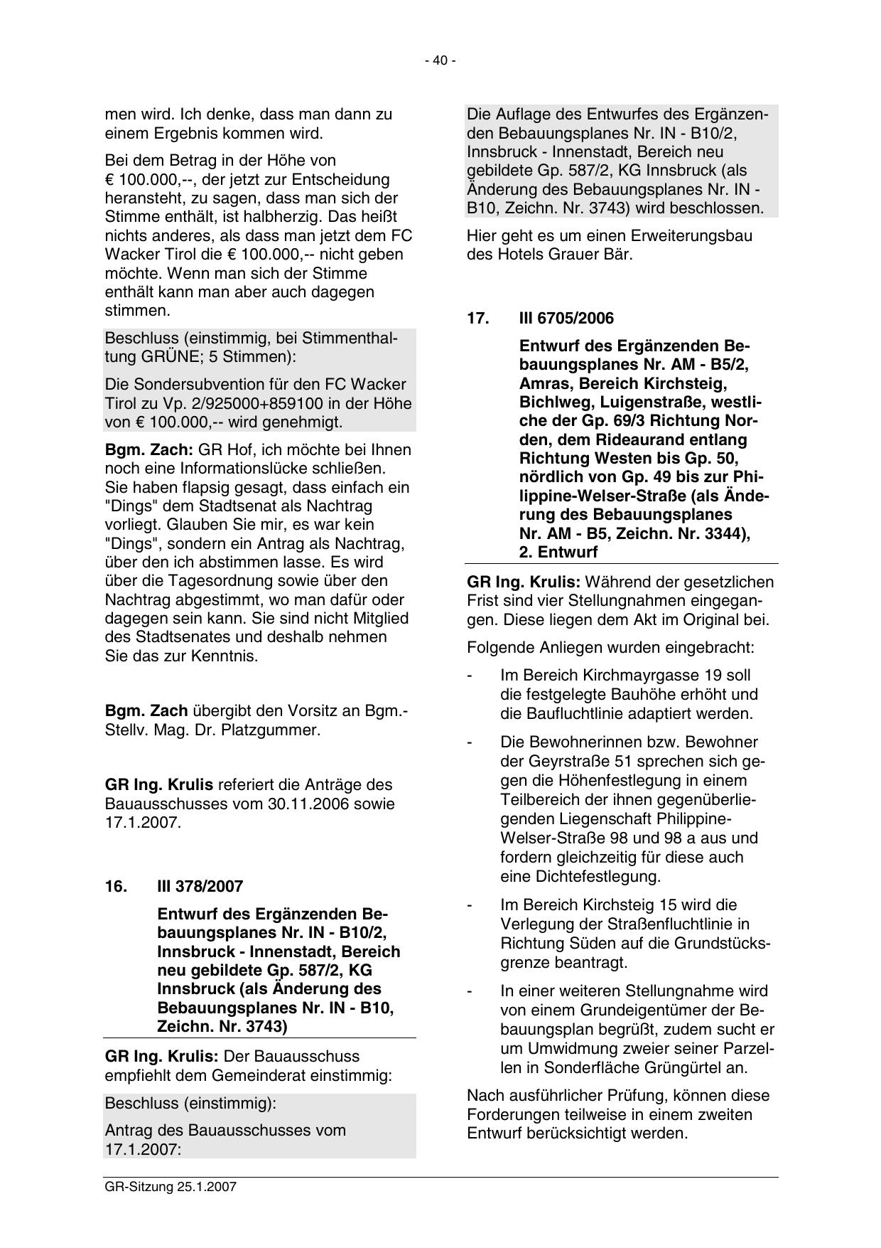 Bgm. Zach: GR Hof, ich möchte bei Ihnen