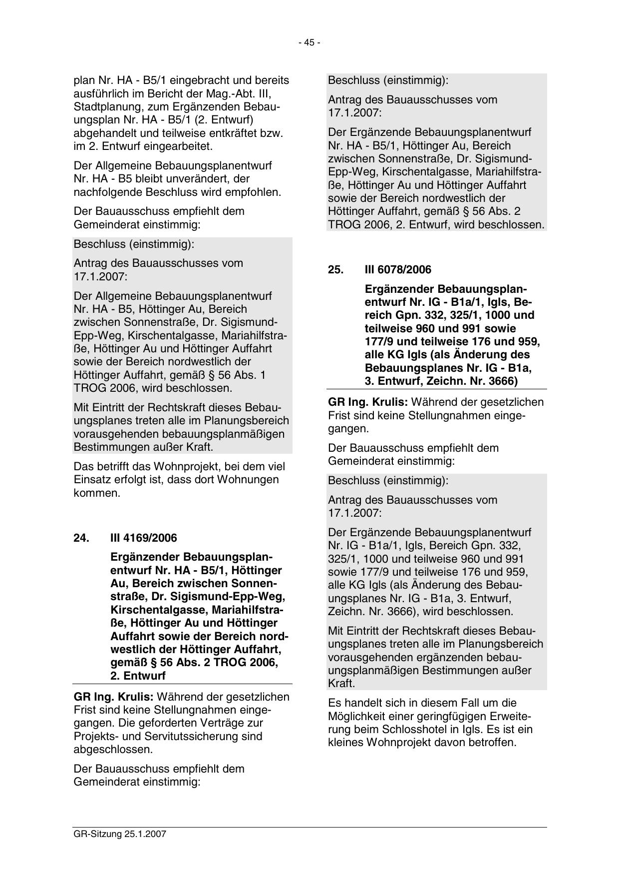 TROG 2006, 2. Entwurf, wird beschlossen.
