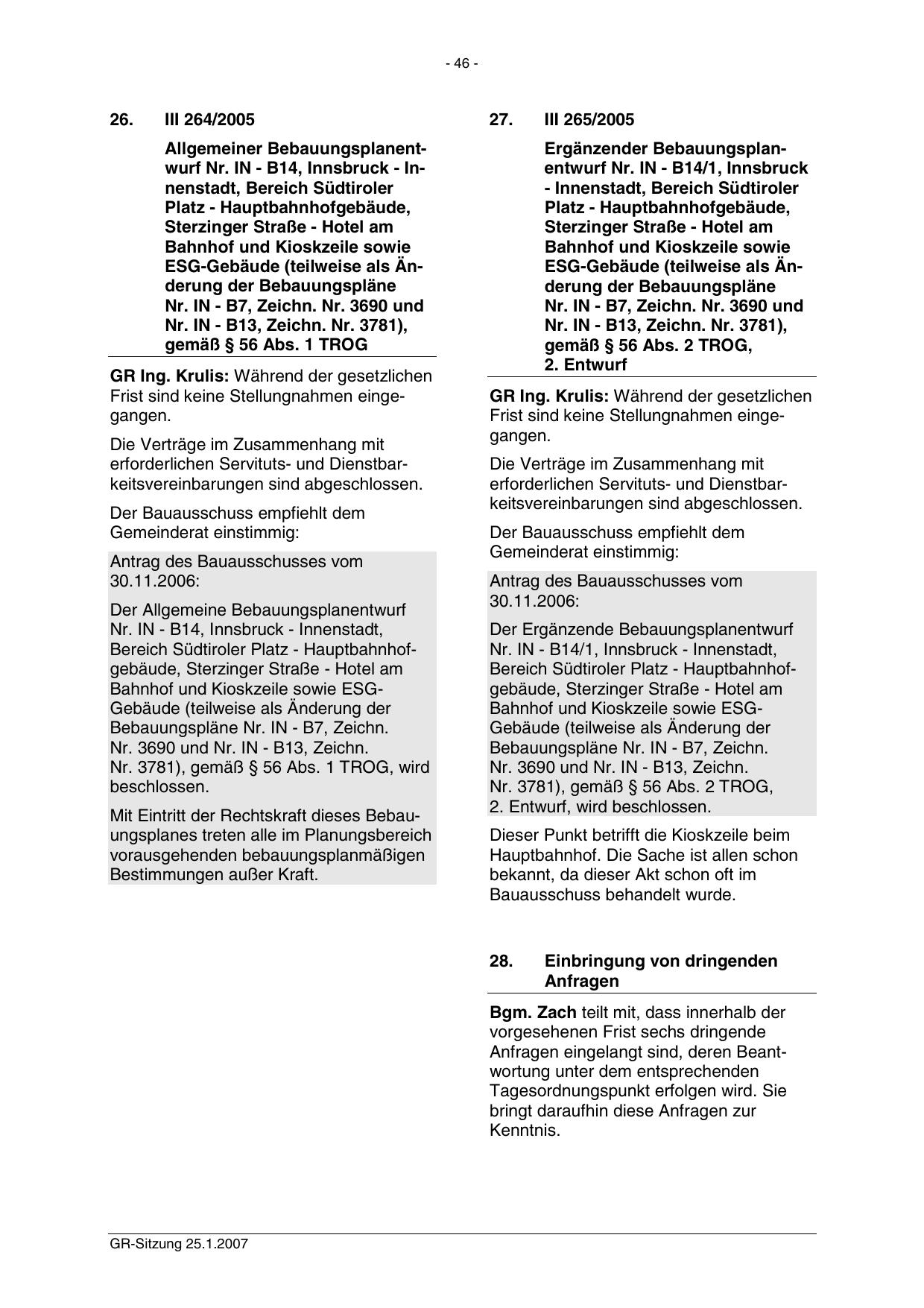 GR-Sitzung 25.1.2007