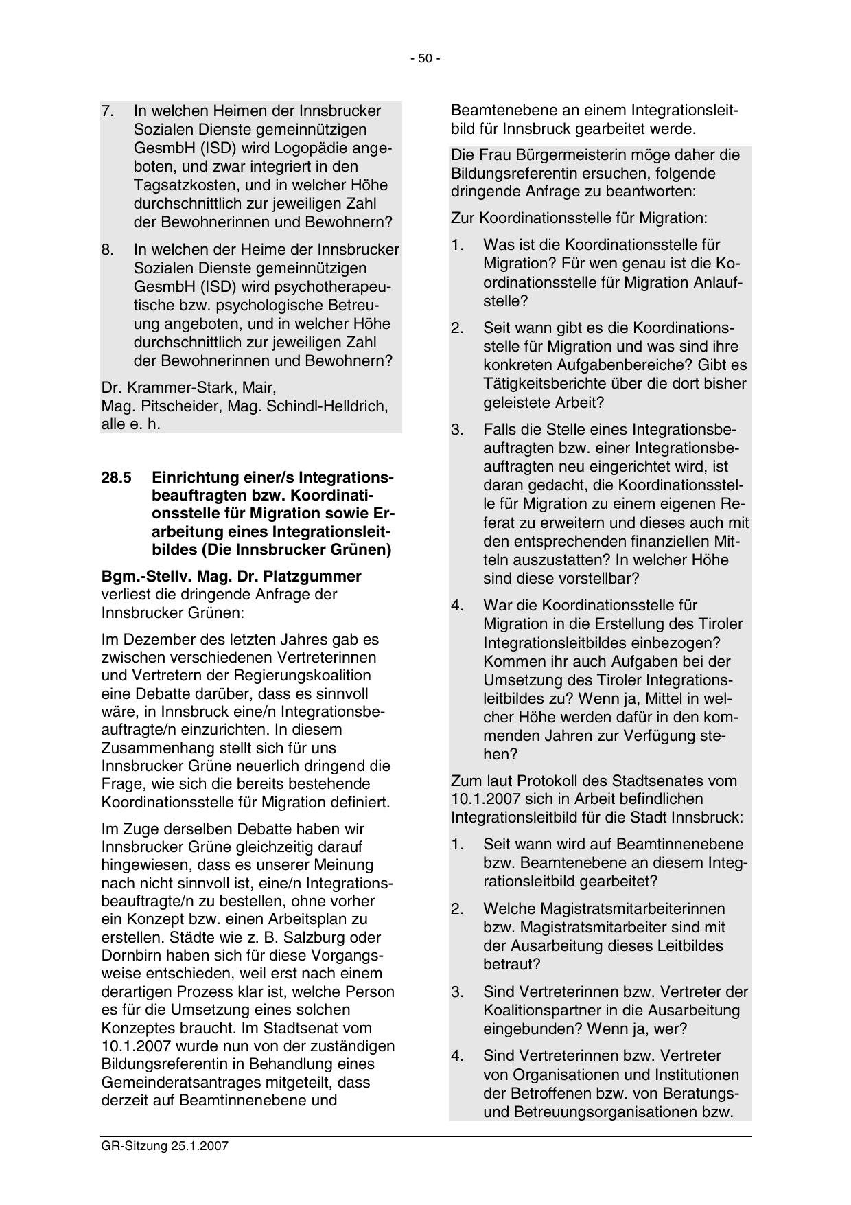 wäre, in Innsbruck eine/n Integrationsbeauftragte/n einzurichten. In diesem