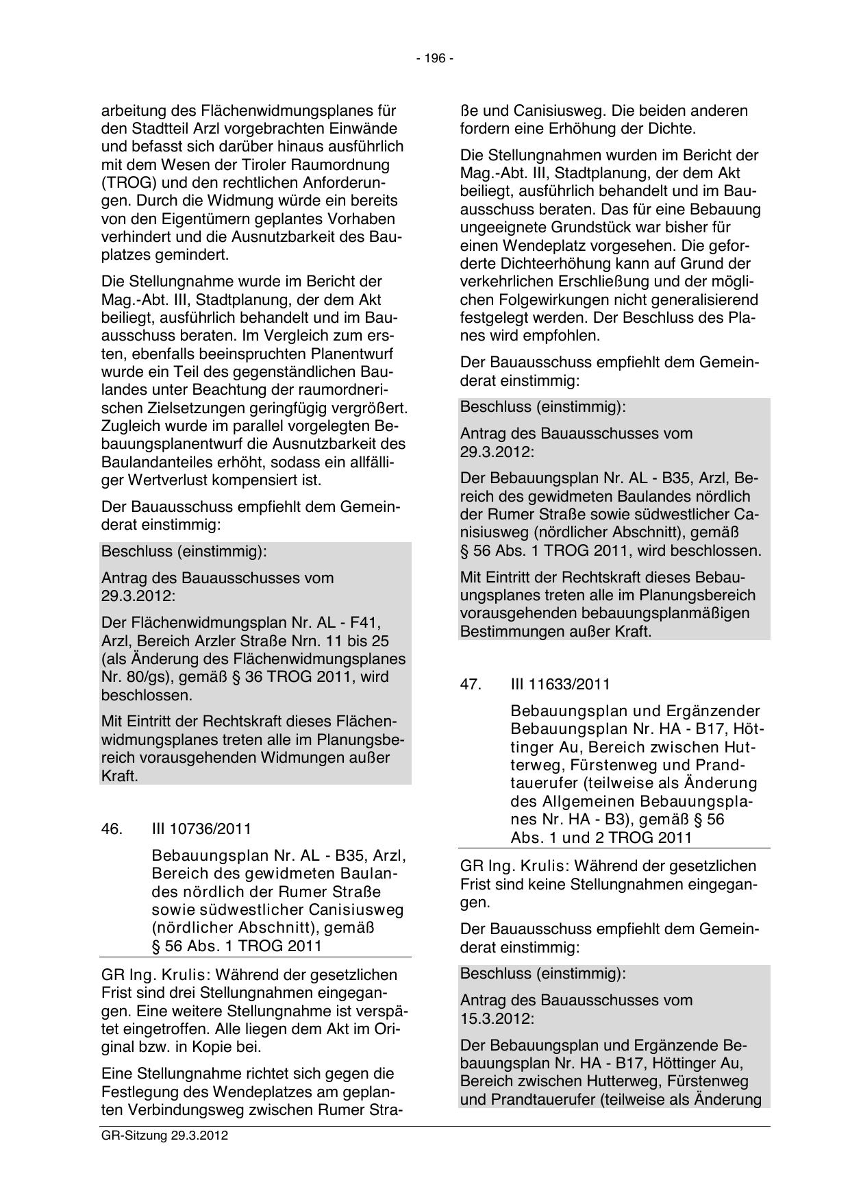Abs. 1 und 2 TROG 2011